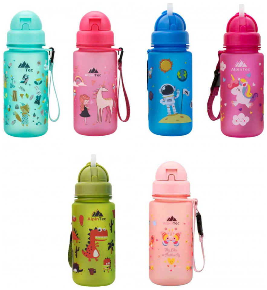 Τα παγούρια AlpinTec διαθέτουν εργονομικό σχεδιασμό και ευκολία στην χρήση για να μας κρατούν ενυδατωμένους σε κάθε στιγμή της ημέρας, όπως ακόμα και τους μικρότερους σε ηλικία, αφού το καλαμάκι στην κορυφή και ο συνδυασμός χαρούμενων σχεδίων και χρωμάτων τα καθιστούν ιδανικά για παιδιά. Ποιος δεν αναζητά την καλύτερη και πιο αξιόπιστη επιλογή για τα παιδιά του; Για αυτόν τον λόγο, η κατασκευή δεν γίνεται από τα συνηθισμένα πλαστικά, αλλά από το υλικό Tritan που είναι απαλλαγμένο από βλαβερές ουσίες, που πολλές φορές αγνοούμε το μέγεθος του κακού που μπορούν να προκαλέσουν. Το ελαφρύ βάρος του, κάνει ξέγνοιαστη την μεταφορά του σε όλα τα μέρη, μέχρι και από τα παιδιά, ενώ το ανθεκτικό λουράκι καρπού που διαθέτει είναι κατασκευασμένο από μεταξένιο υλικό, με άνοιγμα αρκετά μεγάλο ώστε να ταιριάζει σε κάθε καρπό. Συνολικά ένα ποιοτικό παγούρι που θα αγαπήσουν όλα τα παιδιά για την εμφάνιση του, όπως και θα ενθουσιάσει του μεγαλύτερους αφού είναι ασφαλές, μη τοξικό και χωράει στα περισσότερα παιδικά δοχεία φαγητού ή σε μικρές τσάντες.