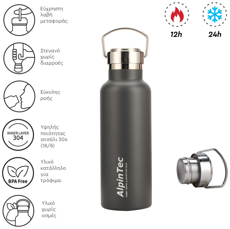 Παγούρι-Θερμός AlpinTec Solist 550ml Κωδ. TH-550GY Grey