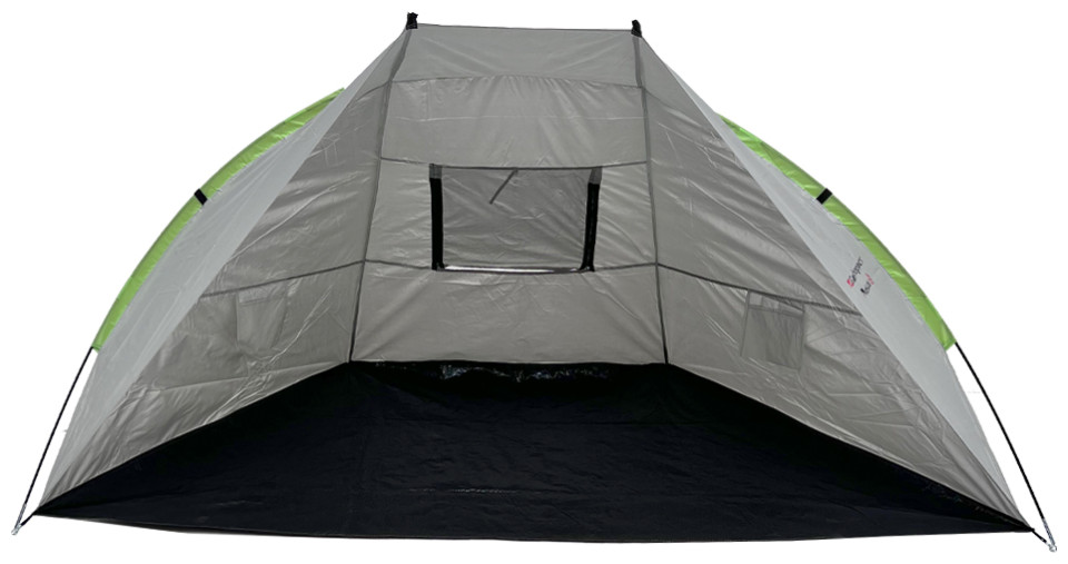Αυτό το καλοκαίρι θα είναι το πιο ξεκούραστο! Με το πρακτικό αυτό σκίαστρο με μεγάλο παράθυρο με κλείσιμο φερμουάρ και 2 θήκες μικροαντικειμένων στο εσωτερικό μπορείτε να απολαύσετε το μπάνιο σας σε κάθε παραλία, χωρίς να χρειάζεται να αναζητήσετε κάποιο σκιερό μέρος ή να κουβαλάτε ομπρέλες κάτω απ' τον καυτό ήλιο...  Ιδανικό για όσους κάνουν κάμπινγκ ή απλώς θέλουν δροσιά και άνεση χωρίς κόπο ή κόστος παντού!