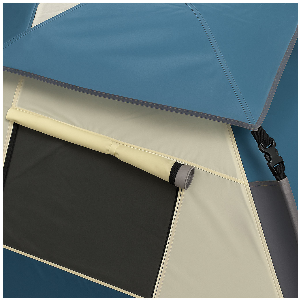 Η σκηνή διαθέτει αυτόματο σκελετό τύπου ομπρέλας, που διευκολύνει την εγκατάσταση και την αποσυναρμολόγηση, εξοικονομώντας σας χρόνο και κόπο. Κατασκευασμένη από ανθεκτικό υλικό Oxford 150D PU με αδιαβροχοποίηση 1500mm, εξασφαλίζει ότι θα παραμείνετε στεγνοί ακόμα και σε βροχερές συνθήκες. Οι θερμοκολλημένες ραφές προσθέτουν επιπλέον προστασία από την υγρασία.