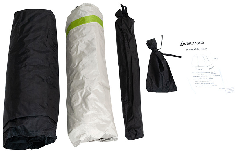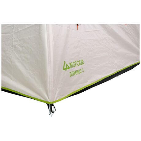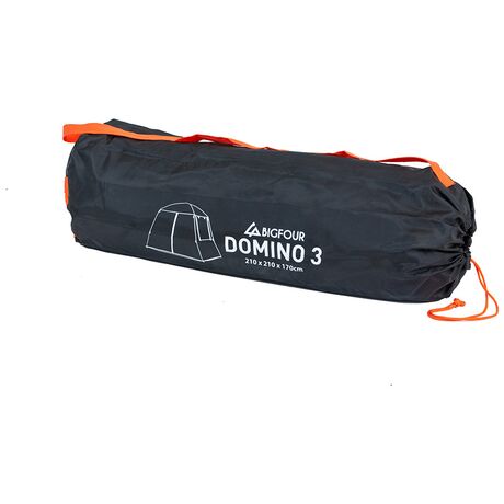 Σκηνή 3 ατόμων Domino από την εταιρεία BigFour με αντιηλιακή προστασία UV+30, ιδανική για το κάμπινγκ και τις υπαίθριες εξορμήσεις! Με διαστάσεις 210χ210χ170cm είναι αρκετά βολική και ευρύχωρη για να φιλοξενήσει εσάς και τα αγαπημένα σας πρόσωπα. Εξωτερικά είναι κατασκευασμένη από 190T πολυεστέρα με επίστρωση silver και PU coated και εσωτερικά από 190T πολυεστέρα διαπνέον, διαθέτοντας και κουνουπιέρα. Το μαύρο εσωτερικό ύφασμα, αλλά και η εξωτερική silver επίστρωση αφήνουν λιγότερο φως να περάσει στο εσωτερικό της σκηνής, εξασφαλίζοντας έτσι περισσότερη ώρα ύπνου το πρωί! Η Domino 3 είναι εξοπλισμένη με 2 πόρτες και 2 παράθυρα τα οποία φέρουν κουνουπιέρες, ενώ εσωτερικά διαθέτει και πρακτικές τσέπες για να αποθηκεύετε τα προσωπικά σας αντικείμενα. Ο σκελετός της σκηνής είναι κατασκευασμένος από fiberglass 2x8,5mm με γωνίες, αρκετά ανθεκτικός και στιβαρός! Απολαύστε ξέγνοιαστες στιγμές στο κάμπινγκ, την εξοχή ή το βουνό με την σκηνή Domino 3 από την BigFour!