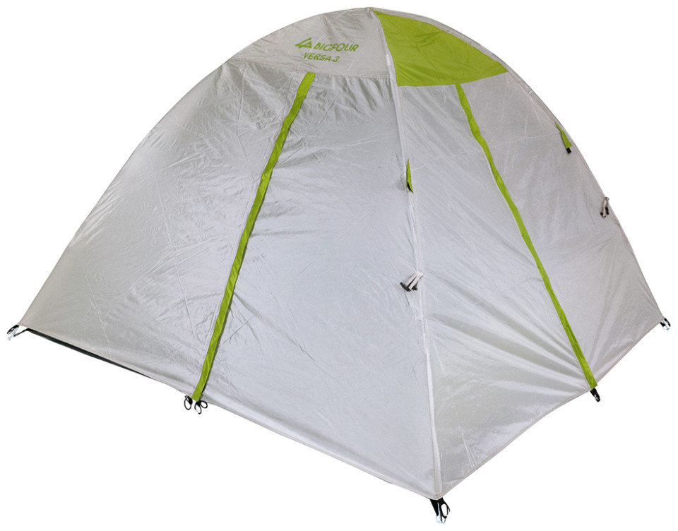 Σκηνή 3 ατόμων Versa από την εταιρεία BigFour ασημί με πράσινες λεπτομέρειες, ιδανική για το κάμπινγκ και όλες τις υπαίθριες αποδράσεις! Με διαστάσεις 205χ205χ135cm είναι κατάλληλη να φιλοξενήσει εσάς και τα αγαπημένα σας πρόσωπα με άνεση! Εξωτερικά είναι κατασκευασμένη από 190T πολυεστέρα και PU Coated και εσωτερικά φέρει κουνουπιέρα. Η Versa 3 είναι εξοπλισμένη με 2 πόρτες και 2 παράθυρα, καλυμμένα από κουνουπιέρα και κλείσιμο με φερμουάρ, ενώ το πάτωμα της είναι από PE 135gr/m2 με 2.000mm αδιαβροχοποίηση. Ο σκελετός της σκηνής είναι κατασκευασμένος από fiberglass 2x8,5mm, αρκετά ανθεκτικός και στιβαρός! Εσωτερικά του δωματίου θα βρείτε πρακτικές τσέπες, για να αποθηκεύετε τα προσωπικά σας αντικείμενα! Απολαύστε ξέγνοιαστες στιγμές στο κάμπινγκ, την εξοχή ή το βουνό με την σκηνή Versa 3 από την BigFour!