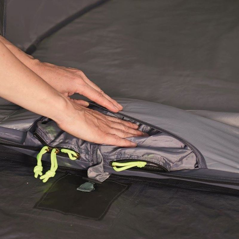 Η σκηνή 5 ατόμων Franklin 5 ανήκει στην Privilege συλλογή της Outwell, η οποία προσφέρει ιδανικές επιλογές για οικογένειες και γκρουπ που αναζητούν πρακτικές και άνετες λύσεις καταφυγίων σε προσοδοφόρες τιμές. Τα δύο Premier Bedrooms χαρίζουν άφθονο χώρο με ελάχιστο μήκος 2,15 μέτρα και άνετο ύψος, και έχουν τη δυνατότητα να φιλοξενήσουν συνολικά 5 άτομα. Η σκηνή διαθέτει σκελετό από ανθεκτικό Duratec Fibreglass 9,5-12,5 mm, ραμμένο ύφασμα δαπέδου από 100% πολυαιθυλένιο, το οποίο είναι αδιάβροχο, εσωτερικό ύφασμα 100% πολυεστέρα που αναπνέει και Flysheet από το Outtex® 4000 Select με θερμοκολλημένες ραφές που προσφέρει βέλτιστη προστασία από τον άνεμο και τη βροχή, παρέχοντας αδιαβροχοποίηση 4.000 mm, αλλά και επιβραδυντικό φωτιάς. Η σκηνή διαθέτει πολλά χαρακτηριστικά που διευκολύνουν την καθημερινότητά σας στη διάρκεια των διακοπών σας, όπως, θήκες για την οργανωμένη αποθήκευση μικροαντικειμένων, σημεία εισόδου καλωδίων, κουρτίνες στα μεγάλα παράθυρα, για να ρυθμίζετε την ποσότητα του φωτός που θέλετε να εισέρχεται στο χώρο σας και διπλά φερμουάρ που επιτρέπουν πλήρες εμπρόσθιο άνοιγμα. Χάρη στην κουνουπιέρα που ενσωματώνεται στα παράθυρα θα μπορείτε να προστατεύετε το εσωτερικό της σκηνής από έντομα, ώστε να αερίζετε τον εσωτερικό χώρο με ασφάλεια. Τα ρυθμιζόμενα σημεία πρόσδεσης, το σύστημα συγκράτησης και οι προεγκατεστημένοι φωτεινοί guylines εξυπηρετούν στο γρήγορο κι εύκολο στήσιμο της σκηνής. Η ελαφριά, ζεστή και ηλιόλουστη οροφή δημιουργεί μια φωτεινή, χαρούμενη εσωτερική ατμόσφαιρα. Απολαύστε άφθονο χώρο, άνεση και οικονομική προσιτότητα με τους φίλους και την οικογένειά σας καθ' όλη τη διάρκεια του camping!