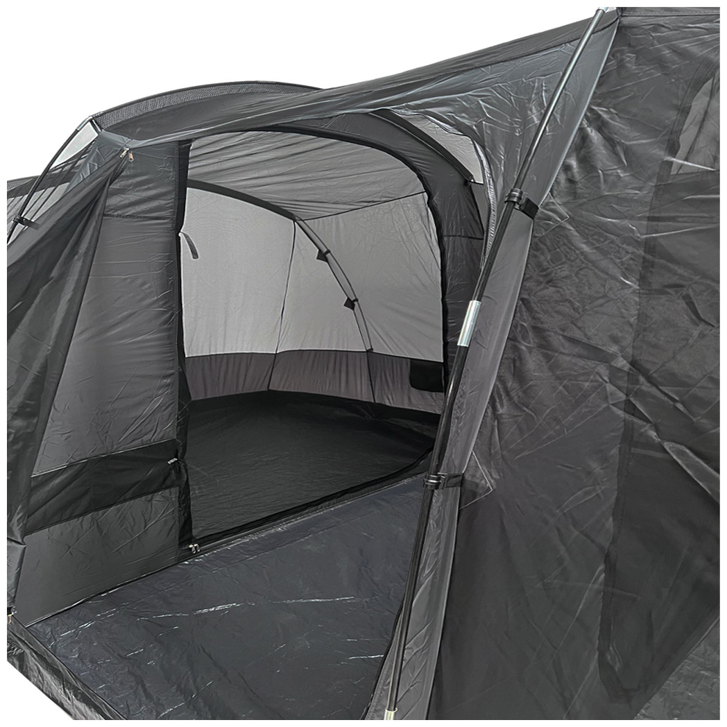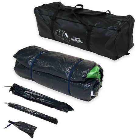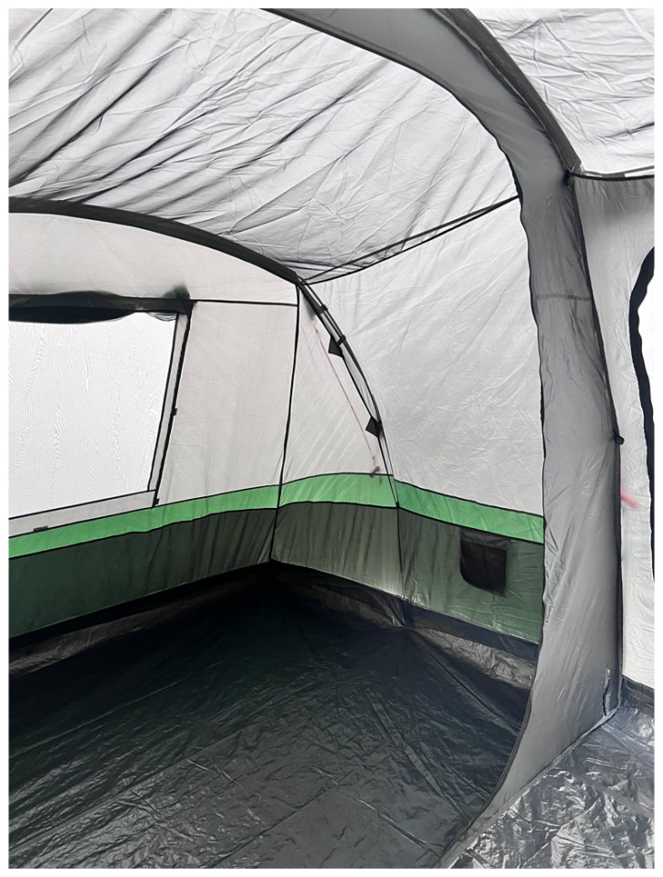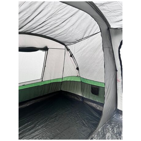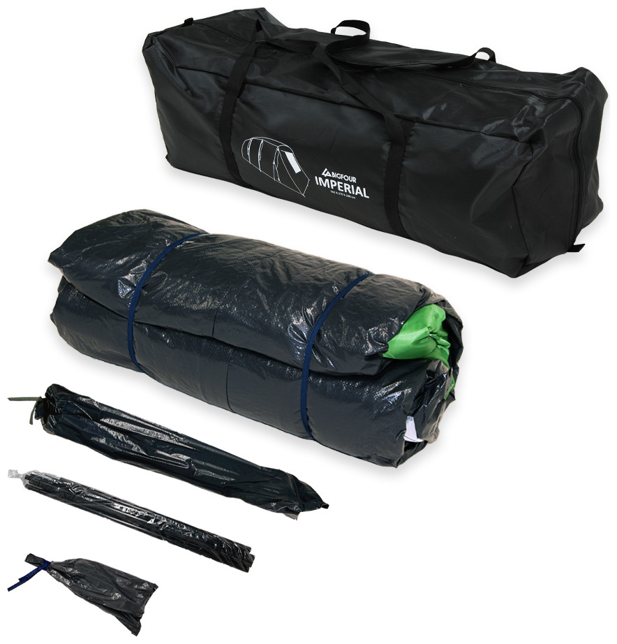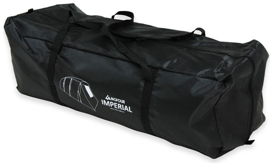 Εξαιρετικής ποιότητας σκηνή camping τούνελ της εταιρίας Bigfour σε πράσινο χρώμα με τρία δωμάτια, κατάλληλη για τις εξορμήσεις σας στην ύπαιθρο. Διαθέτει 2000mm βαθμό αδιαβροχοποίησης και μπορεί να ανταπεξέλθει σε μια απλή βροχή, κάνοντάς την ιδανική για χρήση το καλοκαίρι. Έχει διπλό πανί για καλύτερο εξαερισμό και αποφυγή δημιουργίας υδρατμών. Η σκηνή περιέχει 2 ξεχωριστά πανιά, που τοποθετούνται το ένα επάνω από το άλλο στην οροφή της ή το πάνω μέρος της. Το πρώτο πανί διαθέτει αδιαβροχοποίηση, ενώ το δεύτερο είναι ένα πανί που επιτρέπει τη διέλευση του αέρα και προσφέρει καλύτερο αερισμό στην σκηνή. Ο σκελετός της σκηνής είναι από fiberglass είναι μια συνηθισμένη επιλογή για την κατασκευή σκηνών camping. Πρόκειται για ένα ελαφρύ και ανθεκτικό υλικό, κατασκευασμένο από ίνες fiberglass που επικαλύπτονται με πολυεστέρα για να προστατεύονται από το νερό και την υγρασία, παρατείνοντας έτσι την διάρκεια ζωής της σκηνής σας. Η σκηνή BigFour Imperial αποτελεί ιδανική επιλογή για κάθε είδους υπαίθρια δραστηριότητα παρέα με τους φίλους ή την οικογένεια σας.