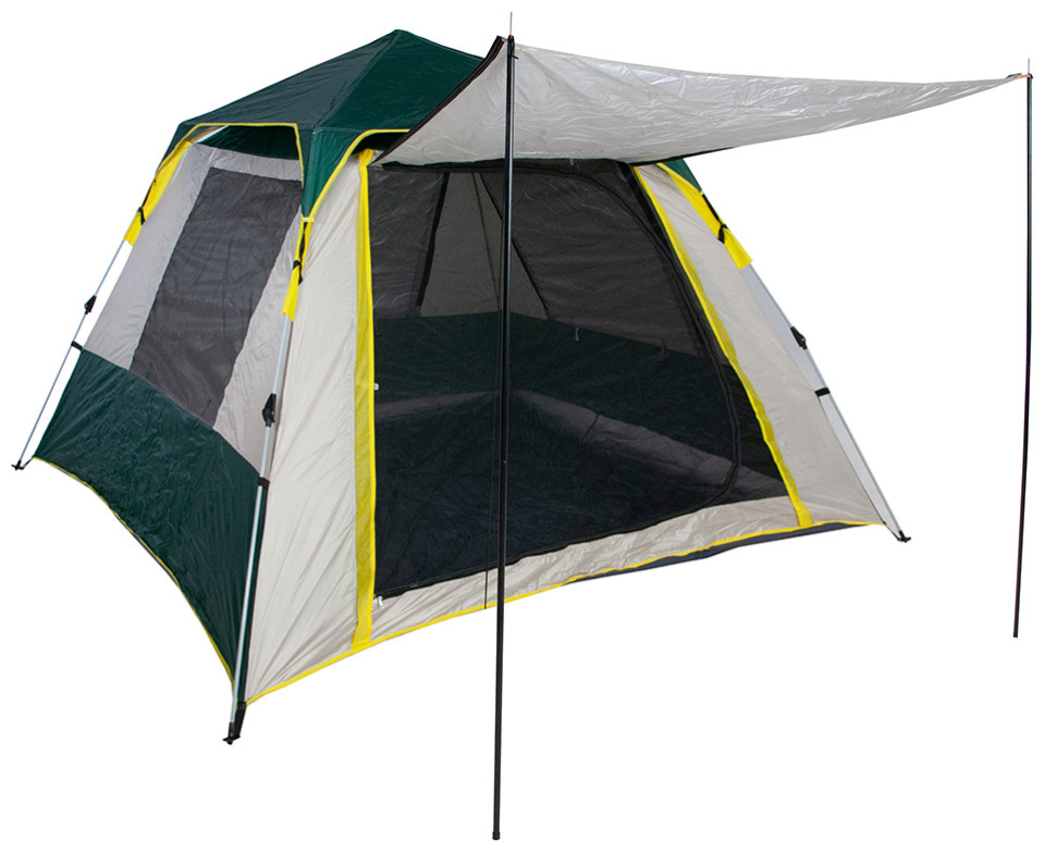 Αυτόματη σκηνή 4 ατόμων η οποία θα σας χαρίσει άνεση στο κάμπινγκ και την κατασκήνωση για να απολαμβάνετε μαζί με την παρέα σας ξέγνοιαστες διακοπές στην ύπαιθρο! Η σκηνή μπορεί να φιλοξενήσει 4 άτομα. Έχει σχεδιασμό με δύο πόρτες και δύο παράθυρα, τα οποία είναι επενδεδυμένα με κουνουπιέρες για να σας διασφαλίζει προστασία από τα ενοχλητικά και επιβλαβή έντομα. Η σκηνή είναι κατασκευασμένη εσωτερικά και εξωτερικά από 190Τ πολυεστέρα και διαθέτει επίστρωση PU για να εξασφαλίζει αδιαβροχοποίηση 2000mm. Οι ραφές της είναι κολλητές και διαθέτει UV, για την προστασία σας από την ηλιακή ακτινοβολία. Πρόκειται για μια εξαιρετική επιλογή που θα σας χαρίζει άνεση και ξεκούραση στο κάμπινγκ, ώστε να ευχαριστιέστε με τους φίλους ή την οικογένειά σας τις διακοπές στη φύση!