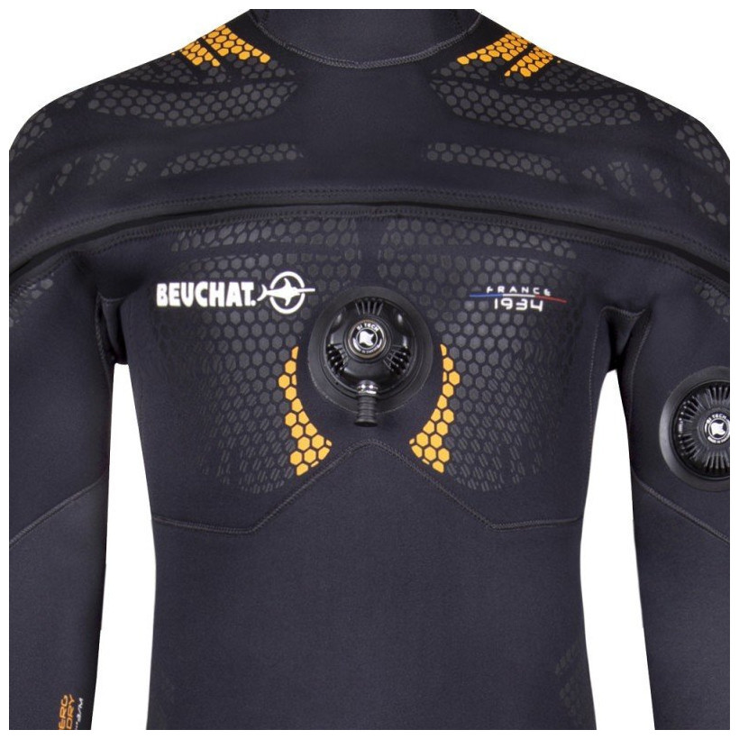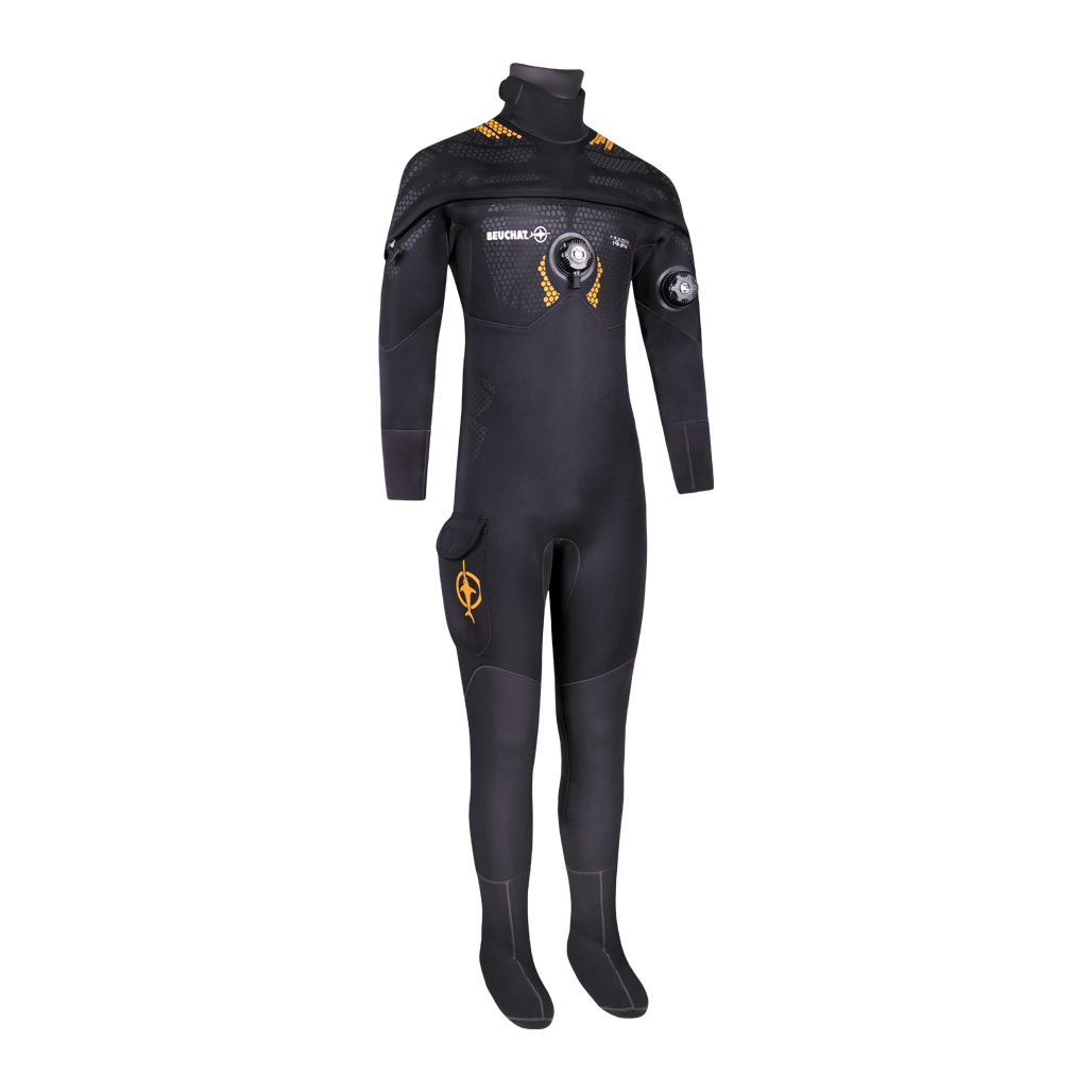 Ανδρική στολή με την υπογραφή της κορυφαίας εταιρείας Beuchat, ιδανική για κατάδυση και κολύμβηση με αναπνευστήρα! Είναι κατασκευασμένη από υπερελαστικό εύκαμπτο νεοπρέν με πάχος 4mm και μαλακό Stretch Elaskin X 2.2 στις αρθρώσεις των ώμων για περισσότερη ελαστικότητα και ευκολία στην κίνηση, καθώς και στο στήθος για πιο άνετη αναπνοή! Επιπλέον, η καινοτόμος τοποθέτηση του φερμουάρ προσφέρει άνεση και μεγάλη ελευθερία κινήσεων προς τα εμπρός, έτσι ώστε το κουστούμι να μπορεί να φορεθεί χωρίς βοήθεια.