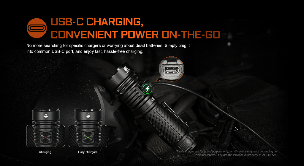 Ο EC90 διαθέτει φόρτιση USB-C για ταχεία επαναφόρτιση, καθώς και δυνατότητα αντικατάστασης μπαταρίας ώστε να παρατείνεται άμεσα ο χρόνος λειτουργίας. Η ένδειξη στάθμης μπαταρίας ενημερώνει πότε χρειάζεται φόρτιση, ώστε να μην μείνετε ποτέ χωρίς φως.