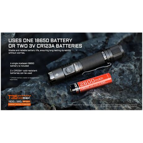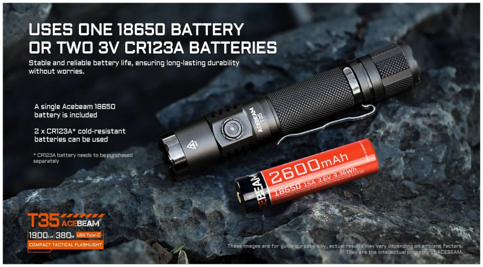 Συμβατός με 2x CR123A 3V συμβατικές μπαταρίες