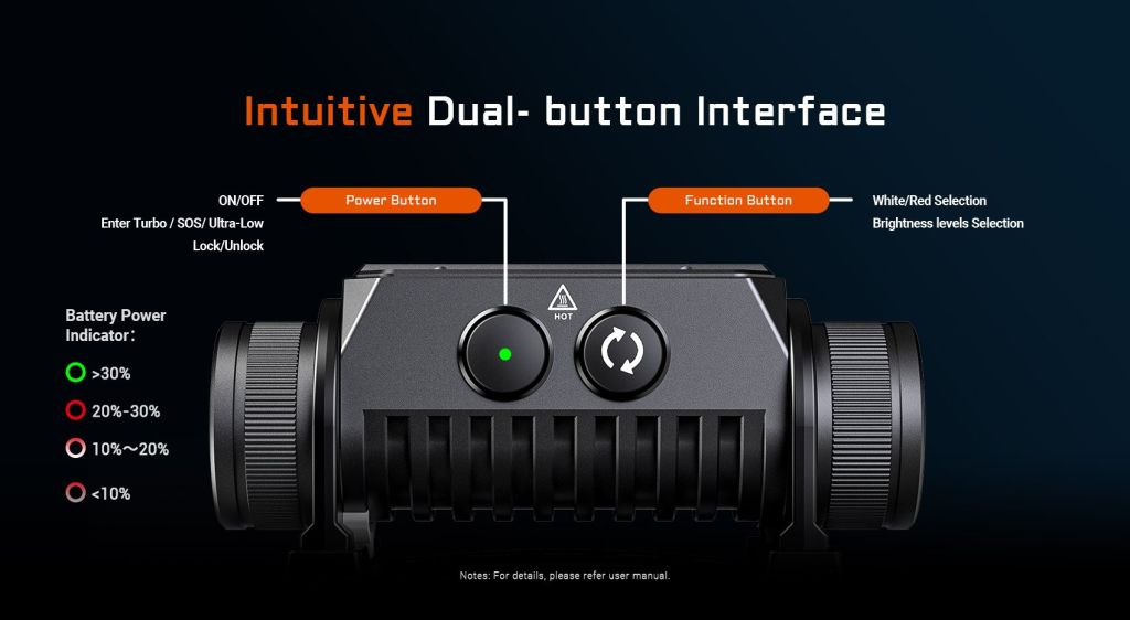 -High: 920 → 320 lumens — 20 λεπτά → 6 ώρες