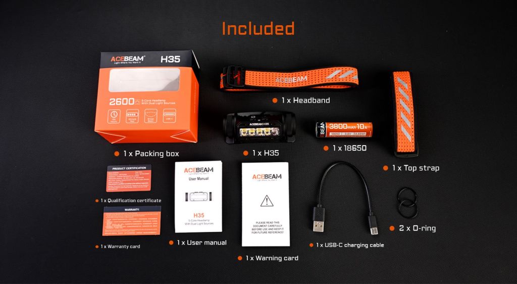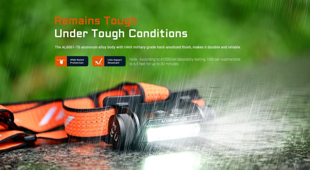 Ο ACEBEAM H35 είναι ένας υψηλής απόδοσης φακός κεφαλής, σχεδιασμένος για βιομηχανικές εργασίες με υψηλές απαιτήσεις. Διαθέτοντας διπλή πηγή φωτός (κόκκινο και λευκό), προσφέρει ισχυρό κόκκινο φως 200 lumens με λειτουργία SOS και μέγιστη ισχύ στο λευκό φως 2600 lumens για φωτισμό ευρείας κάλυψης. Με χρόνο λειτουργίας έως και 216 ώρες στη λειτουργία ultra-low, καλύπτει πλήρως τις ανάγκες παρατεταμένης χρήσης. Τροφοδοτείται από μία μπαταρία λιθίου 18650, ενώ το πατενταρισμένο στήριγμα της ACEBEAM με ρύθμιση γωνίας 70° επιτρέπει ευέλικτη μετάβαση μεταξύ μακρινού και κοντινού φωτισμού. Με βαθμό στεγανότητας IP68 και στιβαρή κατασκευή, αποτελεί ιδανική επιλογή για βιομηχανικές εργασίες, αποστολές έρευνας & διάσωσης και τεχνικούς ελέγχους σε απαιτητικά περιβάλλοντα.