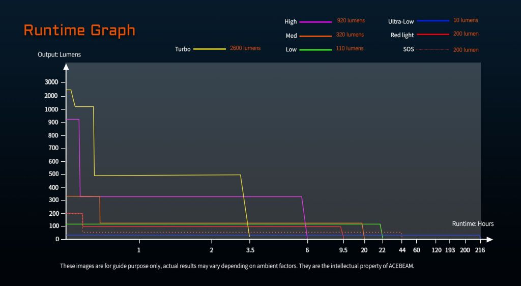 -Μέγιστη διάρκεια: 216 ώρες (στα 10lm)