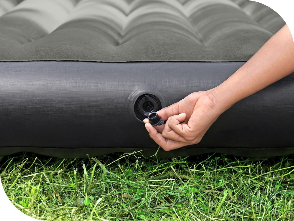 Η μεγάλη βαλβίδα επιτρέπει γρήγορο φούσκωμα και ξεφούσκωμα και είναι συμβατή με τις περισσότερες τρόμπες (δεν περιλαμβάνεται), εξοικονομώντας χρόνο.