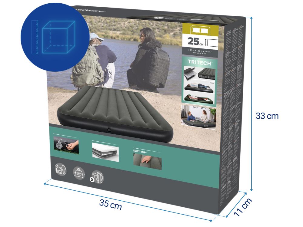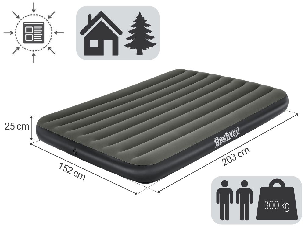 • Διαστάσεις Φουσκωμένου: 203 × 152 × 25 cm