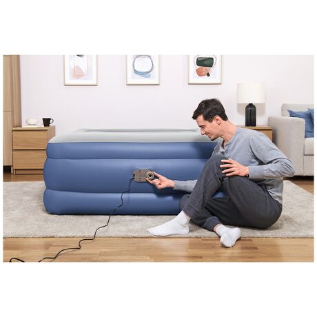 Φουσκωτό Στρώμα Ύπνου της Bestway Υπέρδιπλο με άνετες διαστάσεις 203x152x61cm για να απολαμβάνετε ένα άνετο και ξεκούραστο ύπνο. Με ενσωματωμένο μαξιλάρι για μεγαλύτερη άνεση και ενσωματωμένη ηλεκτρική αντλία για εύκολο φούσκωμα ανα πάσα στιγμή. Με εσωτερικά στηρίγματα Tritech από δίχτυ πολυεστέρα σε πλαίσιο PVC δημιουργούν ένα ανθεκτικό και άνετο στρώμα. Στιβαρή κατασκευή I-Beam με μέγιστη αντοχή έως 300kg. Ιδανική επιλογή για το σπίτι για να απολαμβάνουν οι φιλοξενούμενοι σας έναν άνετο και ξεκούραστο ύπνο.