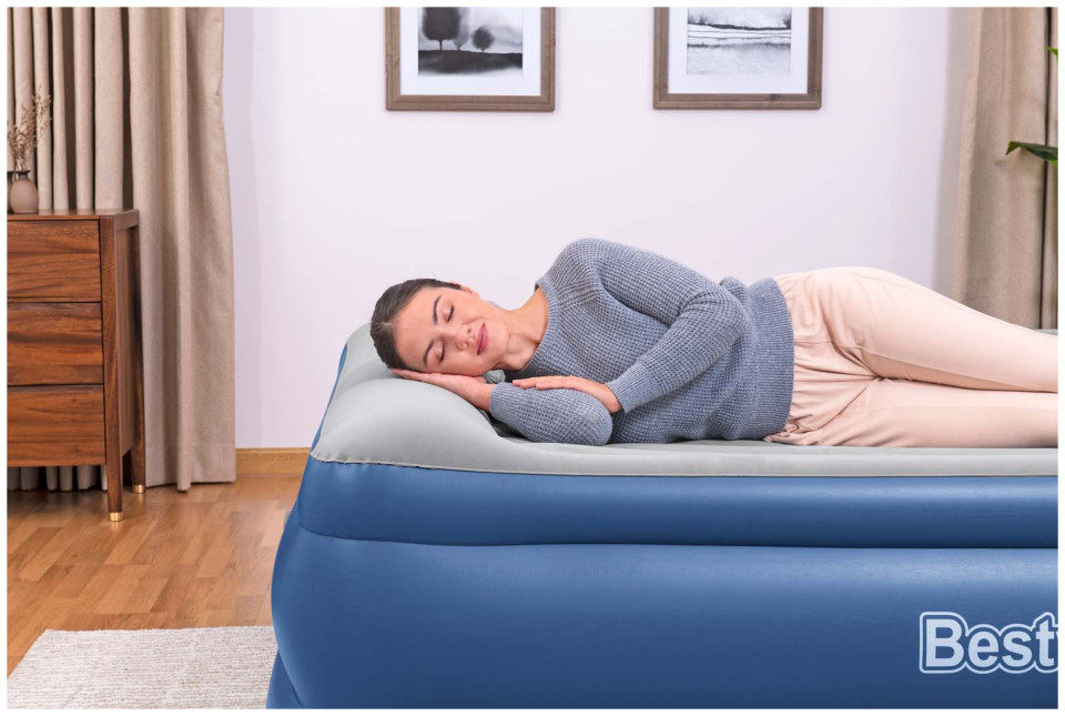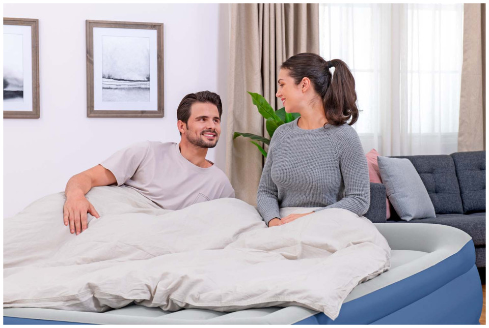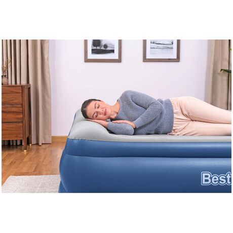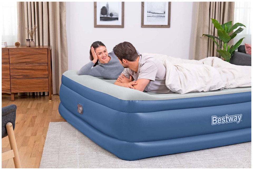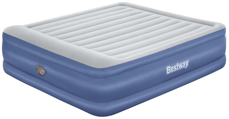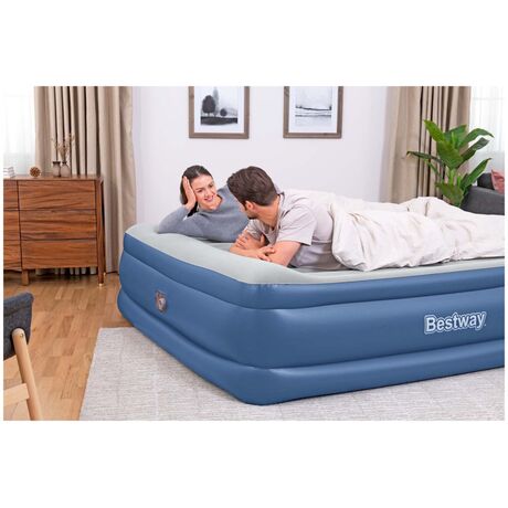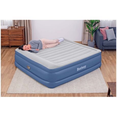 Φουσκωτό Στρώμα Ύπνου της Bestway Υπέρδιπλο με άνετες διαστάσεις 203x193x56cm για να απολαμβάνετε ένα άνετο και ξεκούραστο ύπνο. Με ενσωματωμένο μαξιλάρι για μεγαλύτερη άνεση και ενσωματωμένη ηλεκτρική αντλία για εύκολο φούσκωμα ανα πάσα στιγμή. Με εσωτερικά στηρίγματα Tritech από δίχτυ πολυεστέρα σε πλαίσιο PVC δημιουργούν ένα ανθεκτικό και άνετο στρώμα. Στιβαρή κατασκευή I-Beam με μέγιστη αντοχή έως 300kg. Ιδανική επιλογή για το σπίτι για να απολαμβάνουν οι φιλοξενούμενοι σας έναν άνετο και ξεκούραστο ύπνο.