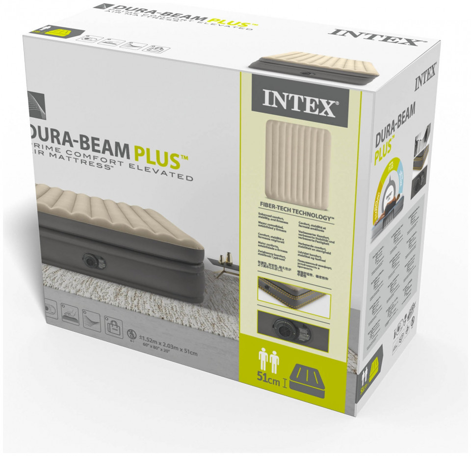 Το Φουσκωτό Στρώμα Ύπνου Prime Comfort Elevated INTEX 64164 με την μαλακή επάνω επιφάνειά του, την τεχνολογία Fiber-Tech και τη ειδική κατασκευή του για μεγαλύτερη άνεση θα σου προσφέρει ονειρεμένους ύπνους! Με 51cm ύψος και την ειδική σχεδίασή του για σεντόνια με λάστιχο, η ευκολία που προσφέρει είναι μοναδική! Για πολυτέλεια που δεν έχεις ξαναζήσει!