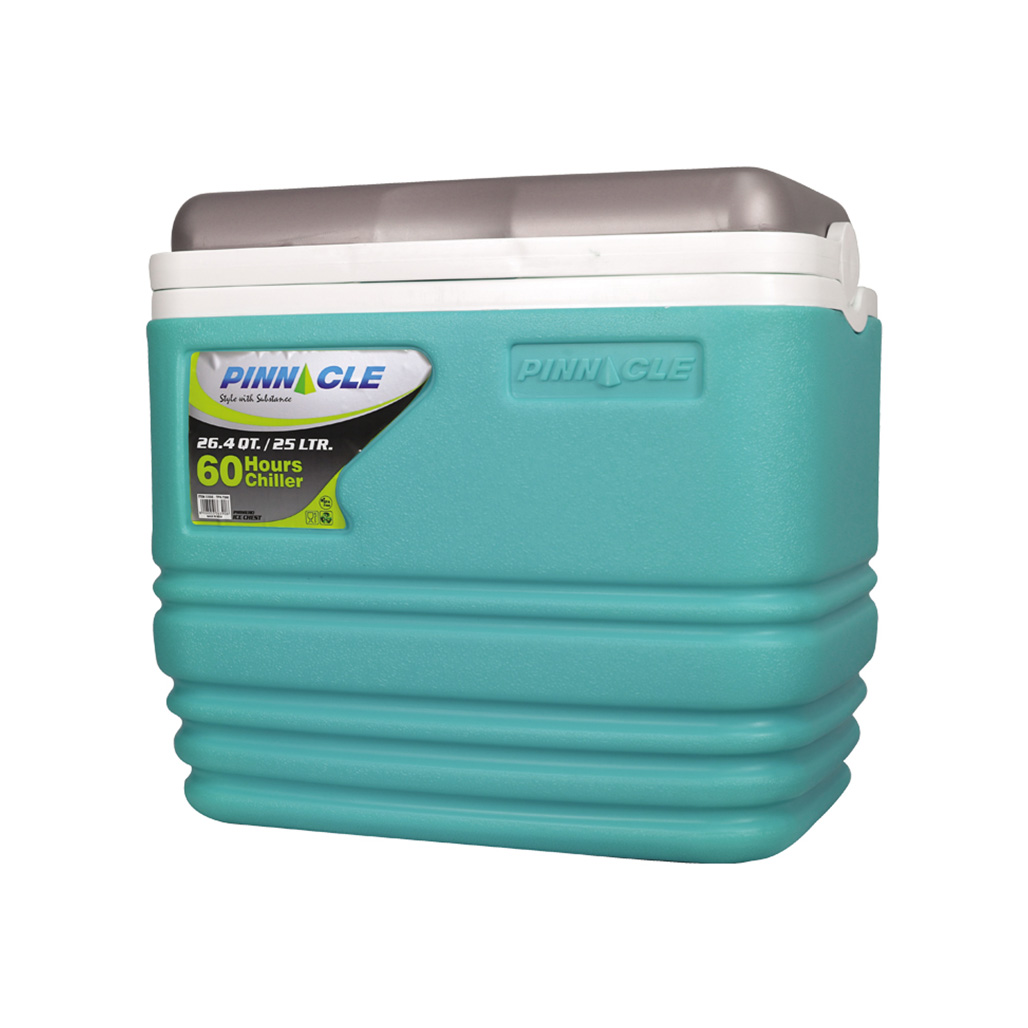 Ψυγείο ισοθερμικό 25 λίτρων κατάλληλο για τις εξορμήσεις σας στην παραλία και την εξοχή, στο κάμπινγκ και το ψάρεμα! Είναι κατασκευασμένο από υλικό HPDE, υλικό γνωστό για τις αντοχές του στις υψηλές θερμοκρασίες και τη σκληρότητα του. Διαθέτει ειδική μόνωση στο σώμα αλλά και στο καπάκι από PU (πολυουρεθάνη), ένα υλικό ευρέως γνωστό για τις μονωτικές του ιδιότητες. Μπορείτε με τη χρήση πάγου να παγώσετε και να διατηρήσετε τα αναψυκτικά/ποτά σας για πολλές ώρες, ενώ με την χρήση παγοκύστης μπορείτε να διατηρήσετε τη θερμοκρασία εσωτερικά, προκειμένου να μεταφέρετε ευαίσθητα τρόφιμα όπως γάλα ή κρέας. Διαθέτει χερούλι μετακινούμενο μπρος-πίσω για την εύκολη μεταφορά του. Διατηρεί την ψύξη του 60 ώρες.