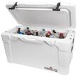 Φορητό ψυγείο από την μοναδική εταιρεία Igloo χωρητικότητας 66lt. Ψυγείο εξαιρετικά μεγάλης αντοχής (πρακτικά άθραυστη κατασκευή roto-molding) με ανασηκώμενη επιφάνεια εργασίας στο καπάκι και μεντεσέ αλουμινίου. Διαθέτει χάρακα μέτρησης μήκους ψαριών / θηραμάτων, υποδοχή λουκέτου Pro-Tek για επιπλέον ασφάλεια σε σύγκριση με απλά λουκέτα, υποδοχή πρόσδεσης στο έδαφος για απόλυτη σταθερότητα. Ελαστικά κλείστρα T-Grip ανθεκτικά και ασφαλή. Έξτρα χωνευτές χειρολαβές για εύκολο φόρτωμα-ξεφόρτωμα από το όχημα και χειρολαβές StableGrip. Σύστημα αποστράγγισης RapidFlo για γρήγορο άδειασμα και καθαρισμό και βάση που δεν μαρκάρει το δάπεδο και κρατά το ψυγείο σταθερό. Η τεχνολογία Cool Riser που χρησιμοποιείται για την κατασκευή του ελαχιστοποιεί την απώλεια ψύξης. Απαραίτητο εργαλείο για κυνηγούς, ψαράδες και άλλους ανθρώπους της υπαίθριας δράσης, αλλά είναι εξίσου ιδανικό για το σπίτι, το camping, το πικ νικ και άλλες δραστηριότητες.