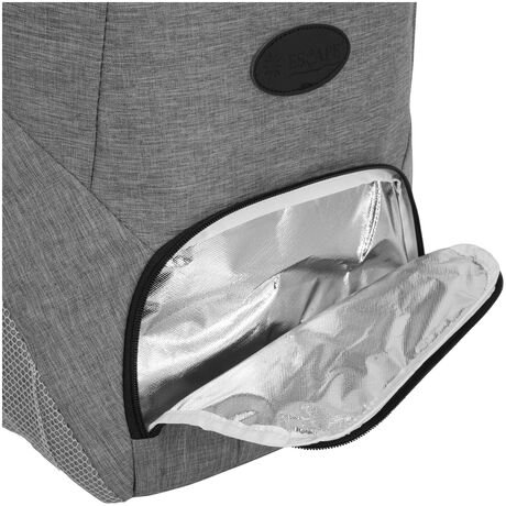 Ισοθερμική Τσάντα Ψυγείο Backpack της Escape με άνετη χωρητικότητα 20 L για να μεταφέρετε με άνεση και ασφάλεια το γεύμα σας, φρούτα ή ροφήματα. Κατασκευασμένη από καμβά εξωτερικά και επένδυση αλουμινίου εσωτερικά για την μέγιστη διάρκεια της κατάλληλης θερμοκρασίας.  Σε περίπτωση μακράς έκθεσης σε ακραίες θερμοκρασίες είναι απαραίτητη η χρήση παγοκύστης για την καλύτερη διατήρηση των αγαθών. Διαθέτει 2 θήκες ισοθερμικές με φερμουάρ και 2 στα πλάγια στις οποίες μπορείτε να αποθηκεύσετε προσωπικά σας αντικείμενα στα οποία επιθυμείτε να έχετε άμεση πρόσβαση.