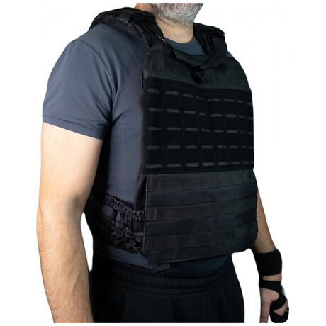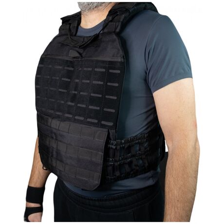 Γιλέκο μάχης νέας γενιάς από την εταιρεία MiJo,  μεταφοράς αλεξίσφαιρων πλακών, το απαραίτητο αξεσουάρ για την άρτια οργάνωση του εξοπλισμού σας, κατασκευασμένο από 100% Polyester, που προσφέρει μεγαλύτερη αντοχή και διάρκεια στον χρόνο, εξοπλισμένο με σύστημα τύπου MOLLE επιτρέπει τη γρήγορη και εύκολη τοποθέτηση οποιονδήποτε θηκών γεμιστήρων, φορέων υδροδοχείου, θήκες πιστολιού, κτλ., δίνοντας ελευθερία κινήσεων στον χρήστη. Το γιλέκο προσαρμόζεται πανεύκολα και αφαιρείται γρήγορα με απλή ανασήκωση του μπροστινού τμήματος. Το απόλυτο army vest σε tactical εξοπλισμό!