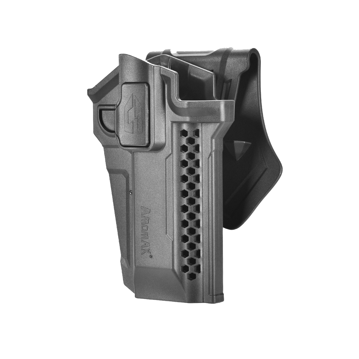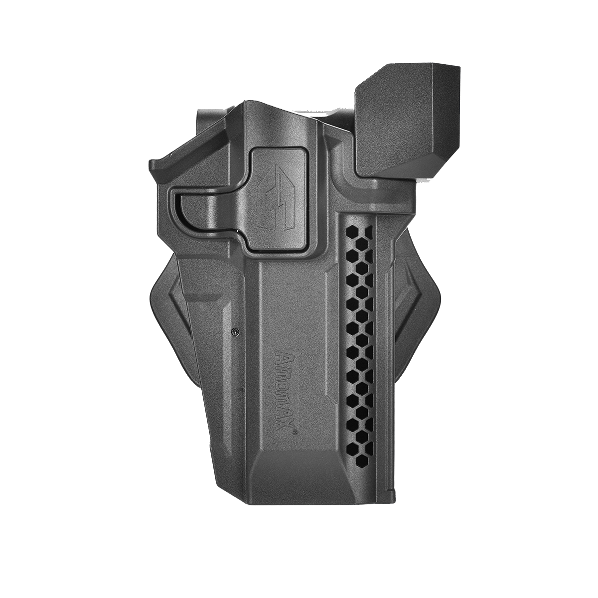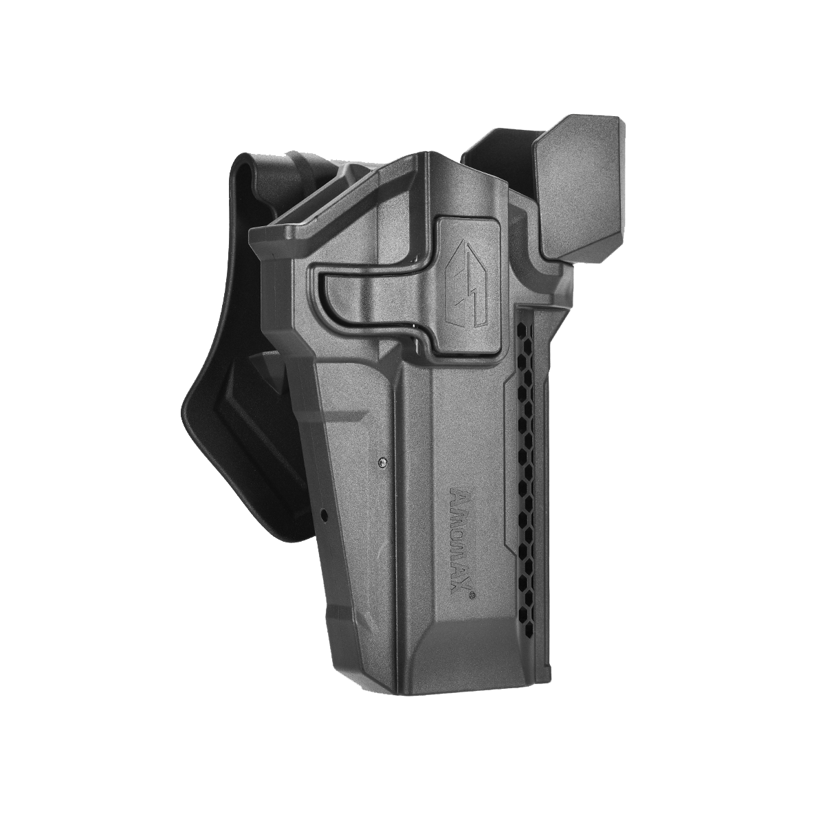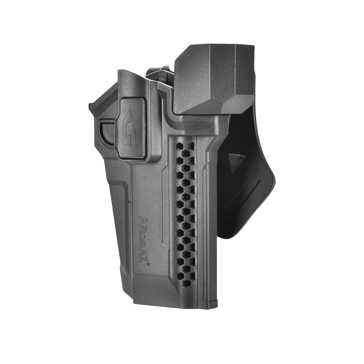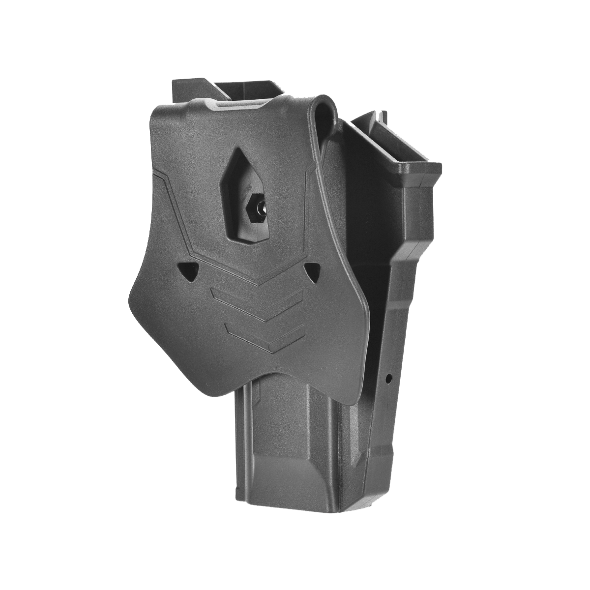 Αυτή η θήκη είναι συμβατή με 7 διαφορετικές πλατφόρμες μεταφοράς με οδοντωτό γρανάζι – κουπί, θηλιά ζώνης, κλιπ ζώνης, σύστημα MOLLE, προσαρμογέας γρήγορης απελευθέρωσης κ.λπ. Μπορείτε να ρυθμίσετε την κλίση κατά 360 μοίρες.