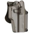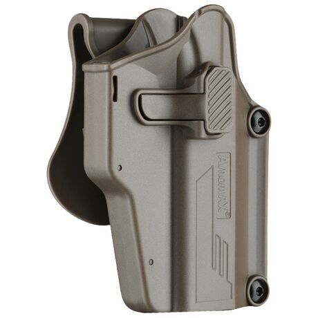 Θήκη Πιστολιού Universal Per-Fit RH FDE συμβατή με περισσότερα από 80 airsoft ή πραγματικά πιστόλια, όπως Glock, Sig Sauer, CZ, Ruger, Springfield Armory, Beretta, Smith & Wesson, σειρά 1911 κ.λπ. Η κλασική απελευθέρωση με το δάχτυλο παρέχει ασφαλή συγκράτηση. Γραμμωτό φινίρισμα έχει προστεθεί στο κουμπί απελευθέρωσης, παρέχοντας πολύ καλή, επιχειρησιακή αίσθηση. Ένα αρχικό σφίξιμο είναι βασικό για να λειτουργεί τέλεια η θήκη. Ξεσφίξτε τις 2 μπροστινές βίδες, Τοποθετήστε το πιστόλι στη θήκη και ρυθμίστε το χώρο για να ταιριάζει στο πιστόλι σας χαλαρώνοντας ή σφίγγοντας τις βίδες. Η θήκη Per-Fit είναι συμβατή με 4 διαφορετικές πλατφόρμες μεταφοράς – κουπί (στάνταρ), κλιπ ζώνης, MOLLE και πλατφόρμα μηρού. Το σώμα της θήκης περιστρέφεται 360 μοίρες. Οι χρήστες μπορούν εύκολα να προσαρμόσουν τη θέση μεταφοράς.