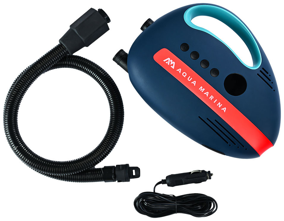 Ηλεκτρική Αντλία 12V της Aqua Marina με μικρό μέγεθος αλλά μεγάλη δύναμη. Συνδέεται στον αναπτήρα του αυτοκινήτου ή στους πόλους της μπαταρίας και φουσκώνει σανίδες iSUP, βάρκες, kayaks και φουσκωτές πλατφόρμες. Λειτουργεί με ισχύ 144W, και πίεση έως 20psi. Σας δίνεται η δυνατότητα ξεφουσκώματος.