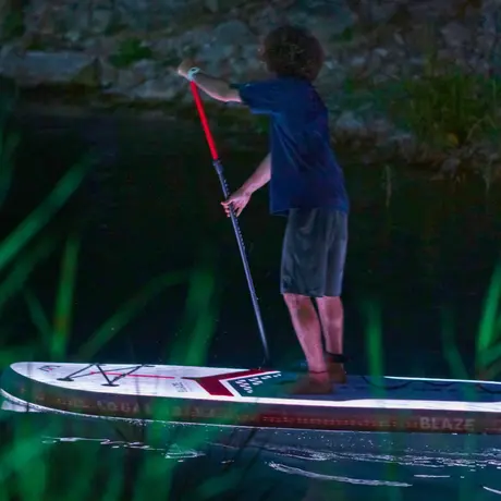 Η Φουσκωτή Σανίδα SUP 10’4’’ Aqua Marina Blaze (Κωδ. 28406) είναι η νέα γενιά φωτιζόμενης σανίδας που θα σας ενθουσιάσει. Με 7 επιλογές χρώματος και 4 λειτουργίες φωτισμού, αυτή η σανίδα είναι ιδανική για κάθε λάτρη του SUP. Κατασκευασμένη από φιλικό προς το περιβάλλον TPU υλικό, είναι ελαφρύτερη κατά 23% και 29% μικρότερη όταν συσκευάζεται σε σχέση με τις αντίστοιχες PVC σανίδες, διευκολύνοντας τη μεταφορά της.