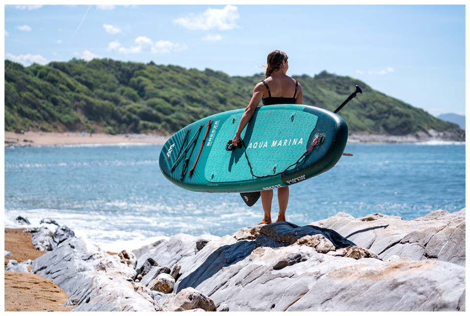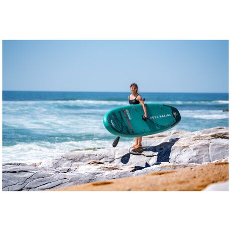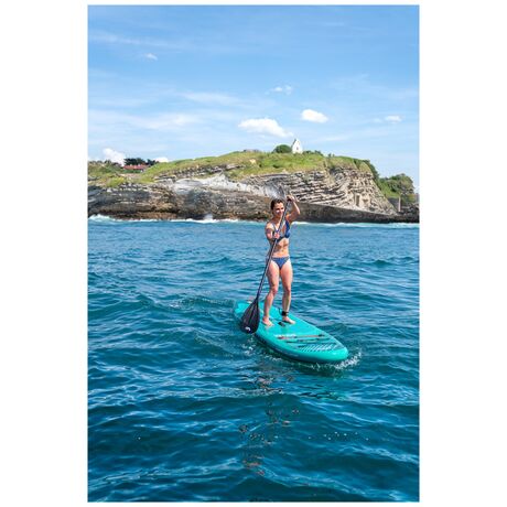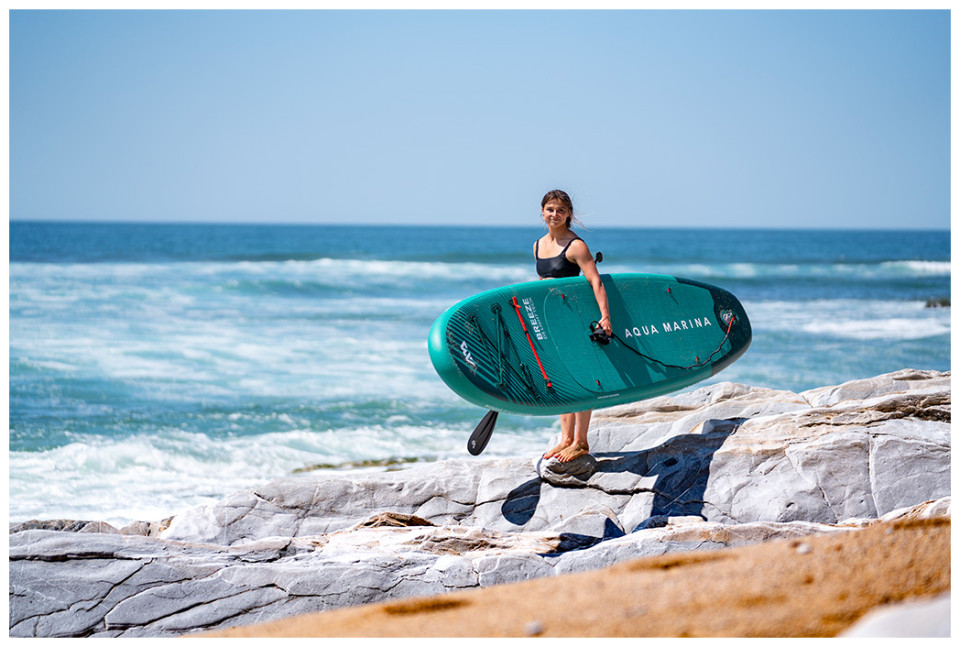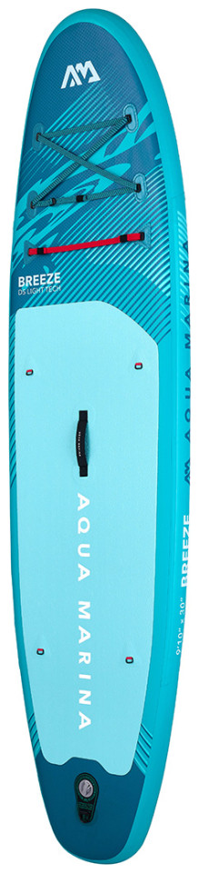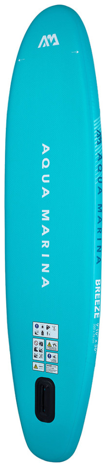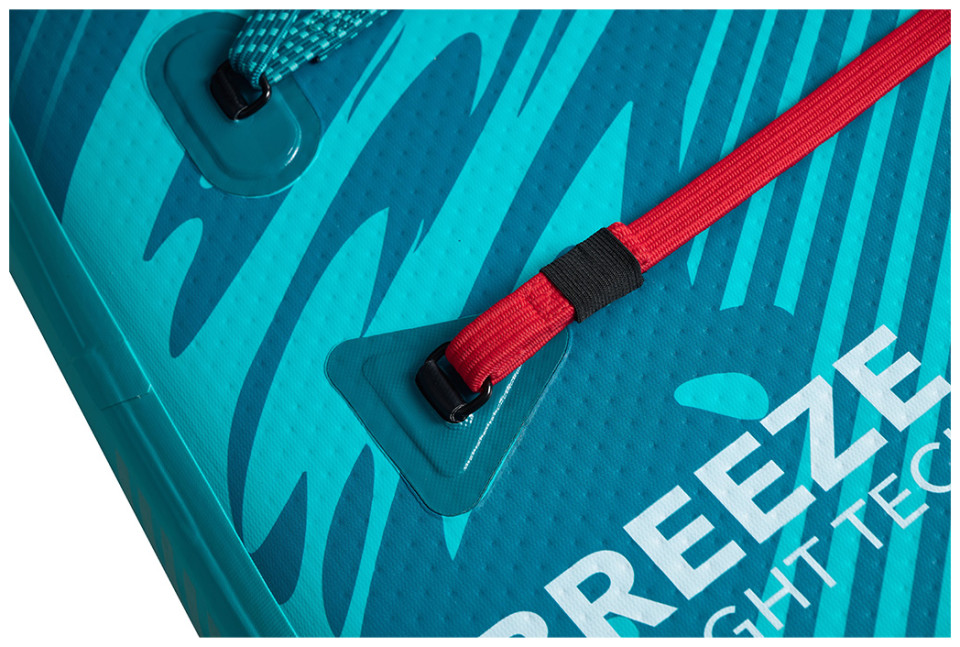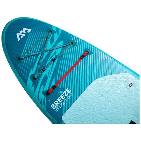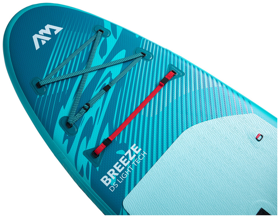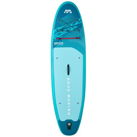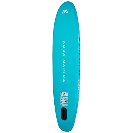Η Φουσκωτή Σανίδα SUP 9'10'' Aqua Marina Breeze είναι η ιδανική επιλογή για τους λάτρεις των θαλάσσιων σπορ. Κατασκευασμένη με την τεχνολογία drop stitch μικρού βάρους (DS light tech), προσφέρει μεγάλη ακαμψία και σταθερότητα, ιδανική για κάθε επίπεδο χρήστη. Με μέγιστη πίεση αέρα 15ps και τετραγωνισμένη ουρά, εξασφαλίζει καλύτερη σταθερότητα κατά την πλεύση. Το νέο ανάγλυφο αντιολισθητικό υλικό με κυματισμό άμμου παρέχει επιπλέον κράτημα και άνεση, ενώ το διπλό σύστημα συγκράτησης αντικειμένων Red Strap™ εξασφαλίζει ασφαλή μεταφορά. Η συμπαγής χειρολαβή Neoprene με επένδυση ιμάντα προσφέρει μεγαλύτερη άνεση και αντοχή. Διαθέτει κρίκους από ανοξείδωτο ατσάλι για τοποθέτηση καθίσματος, μετατρέποντάς την σε sit-on-top kayak. Η βαλβίδα με ανοξείδωτο κρίκο εξασφαλίζει αεροστεγανότητα και φιλικές προς τον χρήστη οδηγίες. Το αποσπώμενο slide-in πτερύγιο προσφέρει ευκολία στη χρήση. Με διαστάσεις 3.00x0.76x0.12cm και μέγιστο βάρος χρήστη 100 kg, είναι ιδανική για όλους. Στη συσκευασία περιλαμβάνονται η σανίδα, ρυθμιζόμενο κουπί αλουμινίου 3 μερών, σάκος μεταφοράς CIRCUPACK™ από ανακυκλωμένο πλαστικό, leash αστραγάλου και αντλία αέρος διπλής ενέργειας Liquid Air V1.