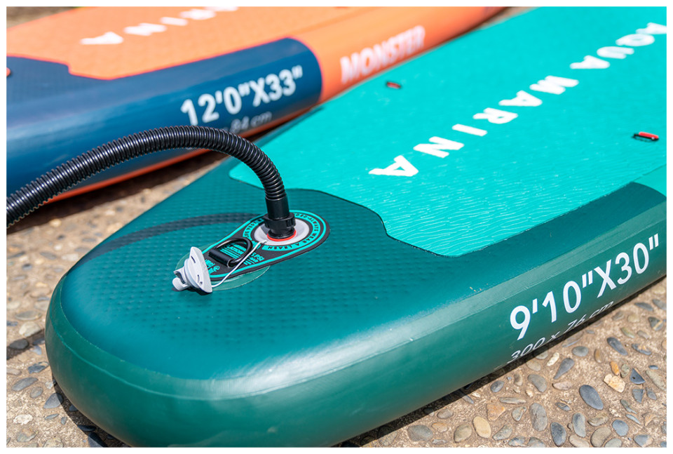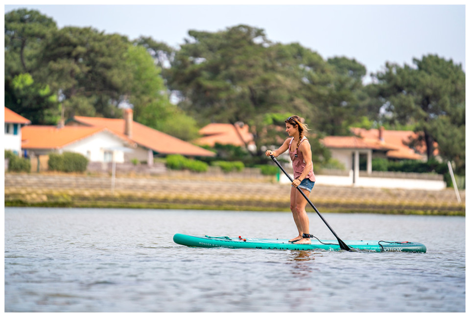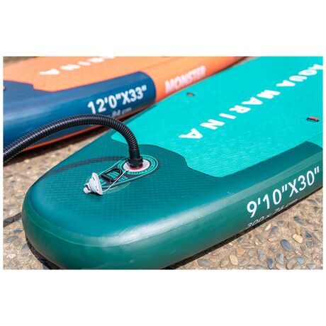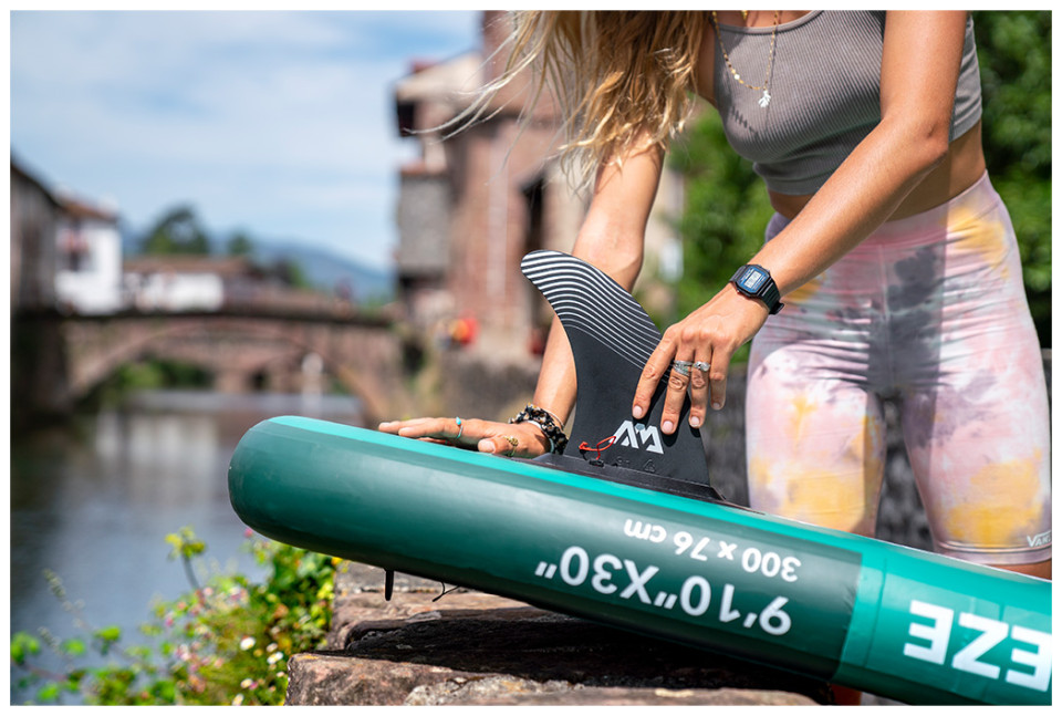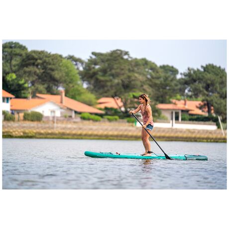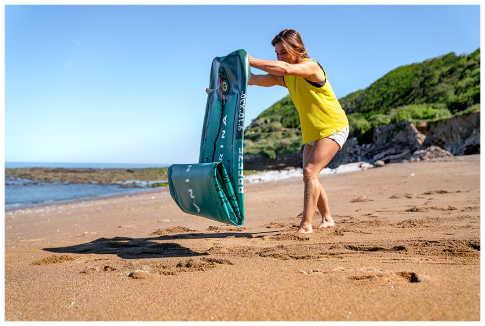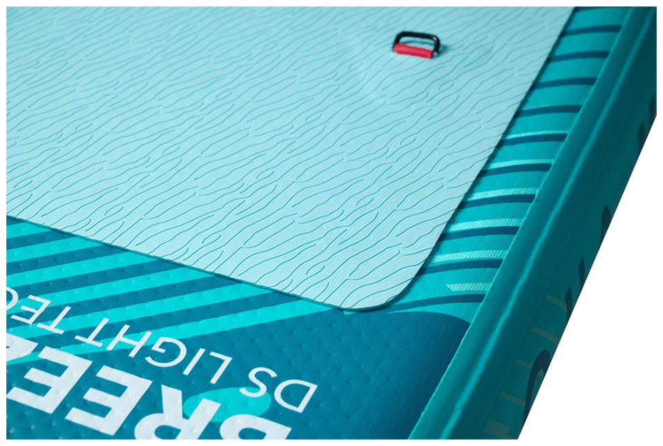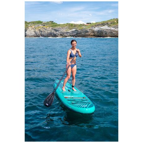 Η Φουσκωτή Σανίδα SUP 9'10'' Aqua Marina Breeze είναι η ιδανική επιλογή για τους λάτρεις των θαλάσσιων σπορ. Κατασκευασμένη με την τεχνολογία drop stitch μικρού βάρους (DS light tech), προσφέρει μεγάλη ακαμψία και σταθερότητα, ιδανική για κάθε επίπεδο χρήστη. Με μέγιστη πίεση αέρα 15ps και τετραγωνισμένη ουρά, εξασφαλίζει καλύτερη σταθερότητα κατά την πλεύση. Το νέο ανάγλυφο αντιολισθητικό υλικό με κυματισμό άμμου παρέχει επιπλέον κράτημα και άνεση, ενώ το διπλό σύστημα συγκράτησης αντικειμένων Red Strap™ εξασφαλίζει ασφαλή μεταφορά. Η συμπαγής χειρολαβή Neoprene με επένδυση ιμάντα προσφέρει μεγαλύτερη άνεση και αντοχή. Διαθέτει κρίκους από ανοξείδωτο ατσάλι για τοποθέτηση καθίσματος, μετατρέποντάς την σε sit-on-top kayak. Η βαλβίδα με ανοξείδωτο κρίκο εξασφαλίζει αεροστεγανότητα και φιλικές προς τον χρήστη οδηγίες. Το αποσπώμενο slide-in πτερύγιο προσφέρει ευκολία στη χρήση. Με διαστάσεις 3.00x0.76x0.12cm και μέγιστο βάρος χρήστη 100 kg, είναι ιδανική για όλους. Στη συσκευασία περιλαμβάνονται η σανίδα, ρυθμιζόμενο κουπί αλουμινίου 3 μερών, σάκος μεταφοράς CIRCUPACK™ από ανακυκλωμένο πλαστικό, leash αστραγάλου και αντλία αέρος διπλής ενέργειας Liquid Air V1.
