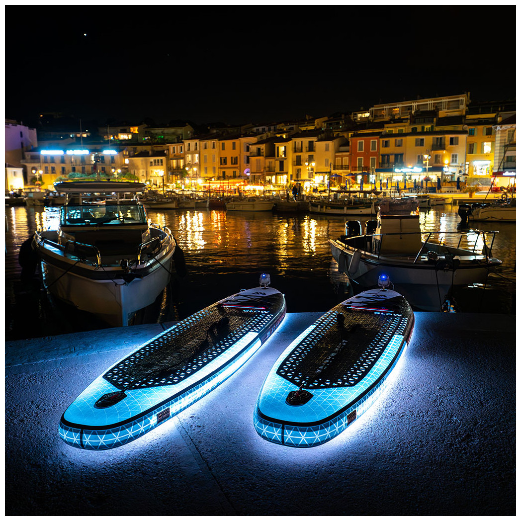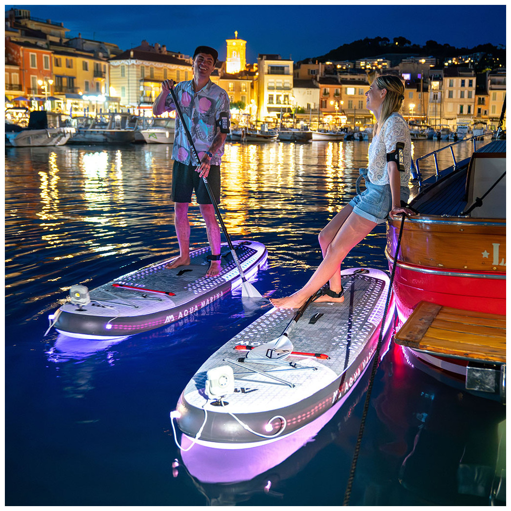 Το νέο και ανανεωμένο φουσκωτό φωτεινό καγιάκ Sup της Aqua Marina θα σας συναρπάσει! Απολαύστε μέρα και νύχτα το SUP με το πρωτοποριακό σύστημα φωτισμού και φωτίστε τη σανίδα σας για ασφαλέστερη και πιο διασκεδαστική διαδρομή.Είναι προσεκτικά σχεδιασμένο για βελτιστοποίηση της ταχύτητας και της απόδοσης, διατηρώντας παράλληλα την άνεση και τη σταθερότητα, παρέχει απόλυτο έλεγχο χειρισμό στις στροφές. Διαθέτει επένδυση σε όλη τη σανίδα από ανάγλυφο αντιολισθητικό υλικό EVA, για μέγιστη σταθερότητα και άνεση κάνοντας sup. Κατασκευασμένο για ταχύτητα και περιπέτεια, εξ ολοκλήρου με τεχνολογία Drop-stitch Light. Διασχίστε τα κύματα και απολαύστε τα δύσκολα νερά με ευκολία, καθώς αυτά τα κανό διαθέτουν όλα όσα χρειάζεστε γι' αυτό!
