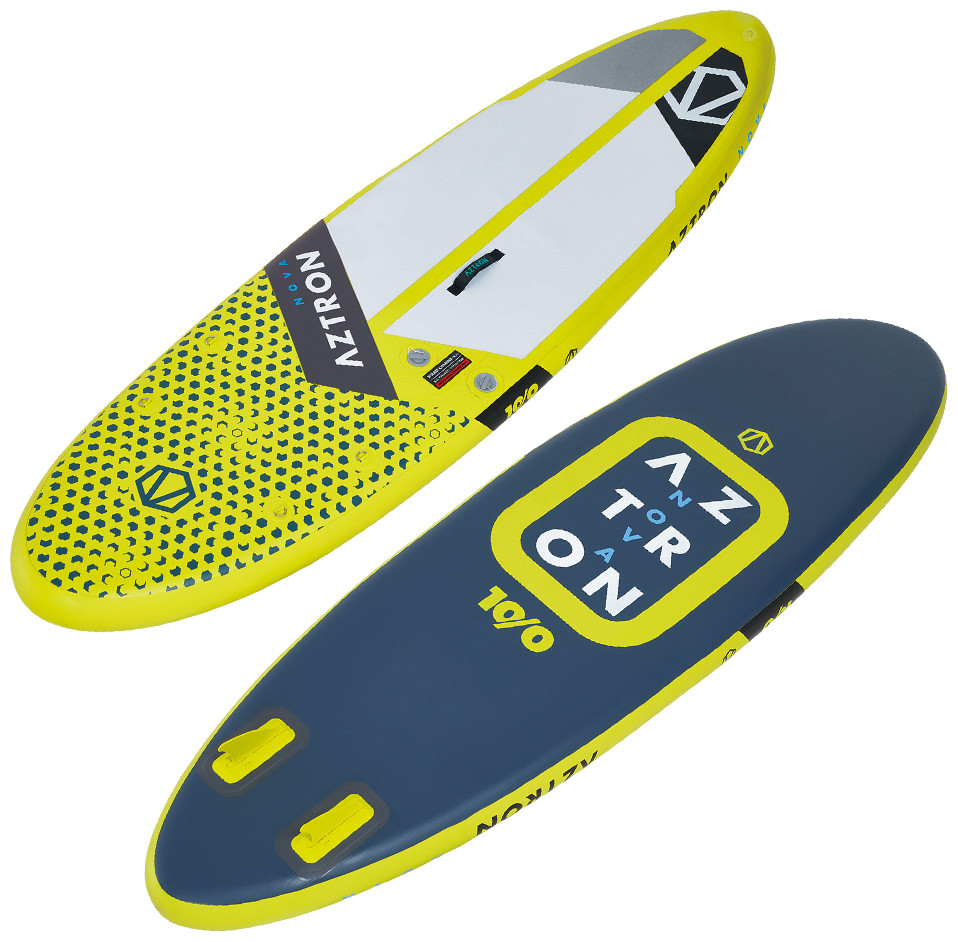 Φουσκωτή Σανίδα Sup Nova 10' της Aztron με καινοτόμα κατασκευή που επιτρέπει την αναδίπλωση του στο μισό μέγεθος σε σχέση με τα άλλα iSup ώστε να χωρά σε ένα compact και εύκολα μεταφερόμενο σακίδιο πλάτης! Ταυτόχρονα διατηρεί όλα τα ποιοτικά χαρακτηριστικά ενός sup της Aztron όπως είναι ο πρωτοποριακός διπλός θάλαμος στην έκδοση 60 λίτρων (Lite Double Chamber) που αυξάνει την ασφάλεια πλευστότητας και την ακαμψία της σανίδας, η στιβαρή κατασκευή από υψηλής πυκνότητας drop stich material και η ωραία σχεδίαση με τα customized γραφικά και τα λαμπερά χρώματα που συναντάμε κατά κανόνα στα Aztron iSups. O νέος Light Tech διπλός θάλαμος μοιράζει τον αέρα σε αναλογία εσωτερικού – εξωτερικού θαλάμου 30 – 70% και όχι 50 -50% όπως τα υπόλοιπα iSup της σειράς, αλλά είναι αυτός που σε συνδυασμό με την – ειδικά διαιρεμένη – αντιολισθητική του επιφάνεια επιτρέπει την τέλεια αναδίπλωση για να μεταφέρουμε το Nova πιο εύκολα από και προς την παραλία. Η Αντιολισθητική επίστρωση EVA στο κατάστρωμα με 4mm αυλάκωση σε διαμαντένιο σχέδιο προσφέρει απόλυτη σταθερότητα στην πλεύση. Με ενσωματωμένη χειρολαβή για εύκολη και άνετη μεταφορά. όλες οι χειρολαβές φτιάχνονται από υψηλής ποιότητας νεοπρένιο και ενισχύονται με λαστιχένιο μαξιλαράκι ώστε να έχουν αντοχή και σίγουρο κράτημα. Ασφαλή μεταφορά φορτίων χάρις στο ειδικά τοποθετημένο σύστημα στο μπροστινό μέρος! Το σχήμα του είναι το δημοφιλές All Around με καμπυλωτό Rocket profile εμπρός για ευελιξία, παιχνίδισμα με τα κύματα και ανταπόκριση σε όλες τις καταστάσεις θάλασσας. Χάρις στο σημαντικό πάχος και πλάτος είναι επίσης σταθερό και εύκολο στη χρήση ακόμα και από αρχάριους χρήστες. Διαθέτει επίσης ένα νέο σύστημα ανάρτησης 2 πτερυγίων 5 ιντσών. Τα πτερύγια κατασκευάζονται από κορυφαίας ποιότητα υλικό και προ φύονται πολύ εύκολα και πολύ σταθερά στην ειδικά σχεδιασμένη push-in βάση. Το διπλό αυτό σύστημα πτερυγίων βοηθά την σανίδα να πλέει με ταχύτητα και εξαιρετική κατευθυντικότητα. Το Aztron Nova διαθέτει compact διαστάσεις, ωραίο design και άψογη ποιότητα κατασκευής. Είναι τόσο εύκολο και διασκεδαστικό στη χρήση που σίγουρα θα γίνει ο αγαπημένος σας σύντροφος για το καλοκαίρι!