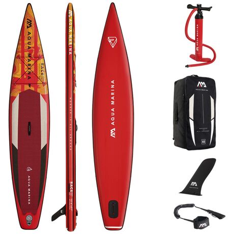 Η φουσκωτή σανίδα Sup Race της Aqua Marina είναι κατασκευασμένη με τεχνολογία QST ( Quadruple Stringer Technology) και drop stitch μικρού βάρους (DS light tech) για ενισχυμένη ακαμψία και λιγότερο βάρος. Η ανάγλυφη επένδυση «crocodile skin» και το αντιολισθητικό υλικό EVA προσφέρουν τη μέγιστη σταθερότητα και άνεση. Διαθέτει πλαϊνά rail pad για καλύτερη ισορροπία στις μεγάλες ταχύτητες και πιπλέον ενίσχυση με ρέλι πλευρικά. Ακόμη ο νέος υδροδυναμικός σχεδιασμός επιτρέπει τη γρήγορη πορεία. Έχει σημείο συγκράτησης αντικειμένων με ελαστικό κορδόνι και μηχανισμό ρύθμισης, συμπαγής χειρολαβή από νεοπρένιο με επένδυση ιμάντα για μεγαλύτερη αντοχή και άνεση, kick pad στην ουρά για επιτόπιες στροφές και ελιγμούς, αναβαθμισμένη βαλβίδα αέρος για μεγαλύτερη στεγανότητα και αποσπώμενο slide-in πτερύγιο racing. Το Sup της Aqua Marina περιέχει σάκο μεταφοράς με φερμουάρ,λουρί αστραγάλου σπιράλ και αντλία αέρος διπλής ενέργειας Liquid Air V2.