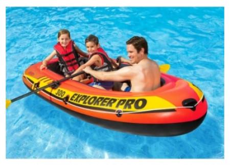 Φουσκωτή Βάρκα Explorer Pro 300 58358 της Intex, χωρητικότητας 3 ατόμων είναι ιδανική για ατελείωτο ψάρεμα και άνετες βόλτες όλο το καλοκαίρι! Κατασκευασμένη από PVC 0.40mm για μέγιστη αντοχή και ανθεκτικότητα, με φουσκωτό πάτωμα για άνεση και ακαμψία και βαλβίδα Boston στο κυρίως σκάφος για γρήγορο φούσκωμα/ξεφούσκωμα! Με 3 θαλάμους αέρος συμπεριλαμβανομένης και μια εσωτερικής βοηθητικής στο εσωτερικό του σκελετού για επιπλέον ασφάλεια και σταθερότητα! Διαθέτει υποδοχές κουπιών στα πλαϊνά τοιχώματα και θήκες κουπιών, επίσης υπάρχει χερούλι στο εμπρός μέρος για να μπορείτε να ρυθμίζεται την φορά της βάρκας και να την ελέγχεται κατά την είσοδο σας στο νερό, όπως και σκοινί αρπαγής περιμετρικά για περιπτώσεις έκτακτης ανάγκης! Στην συσκευασία περιλαμβάνεται set επισκευής για επιδιόρθωση πιθανόν μελλοντικών φθορών! Ένα απόλυτα αξιόπιστο προϊόν που συνδυάζει ποιότητα, ασφάλεια και εμφάνιση, με την τεχνογνωσία και την εμπειρία της INTEX!