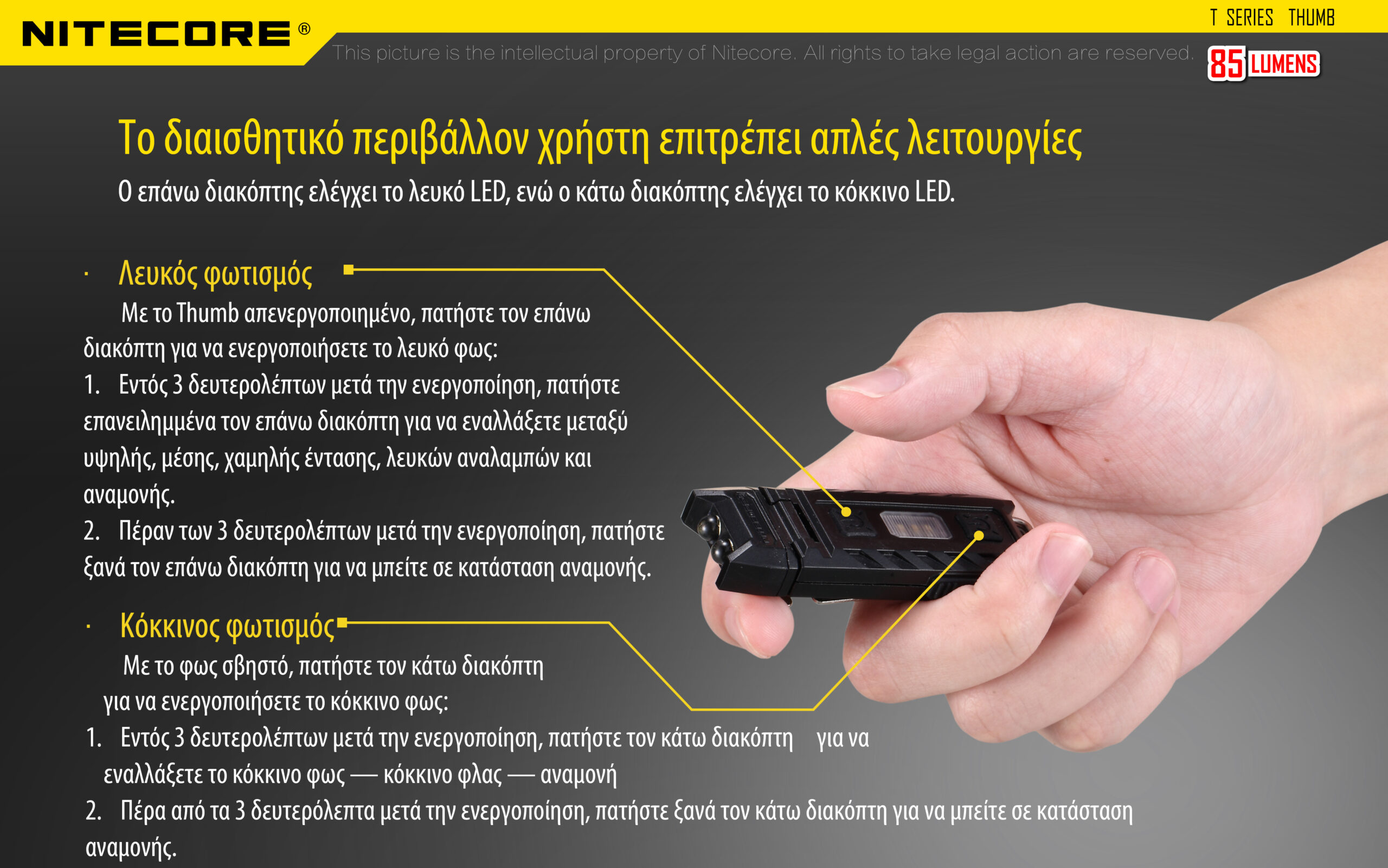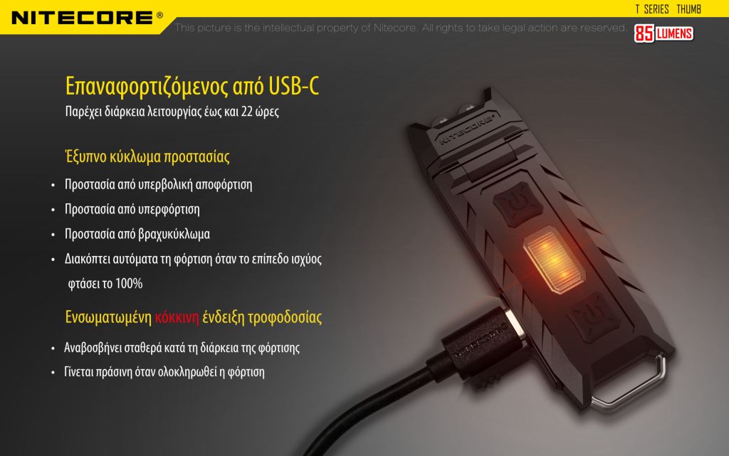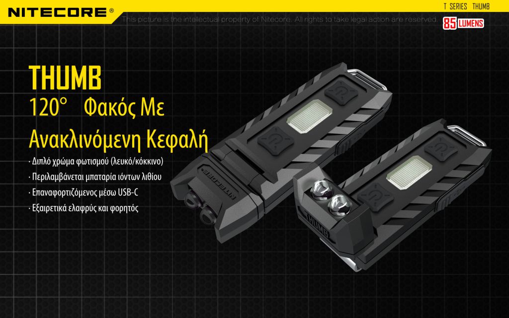 ΦΑΚΟΣ LED NITECORE THUMB USB-C s/n, rechargable, 85lumens