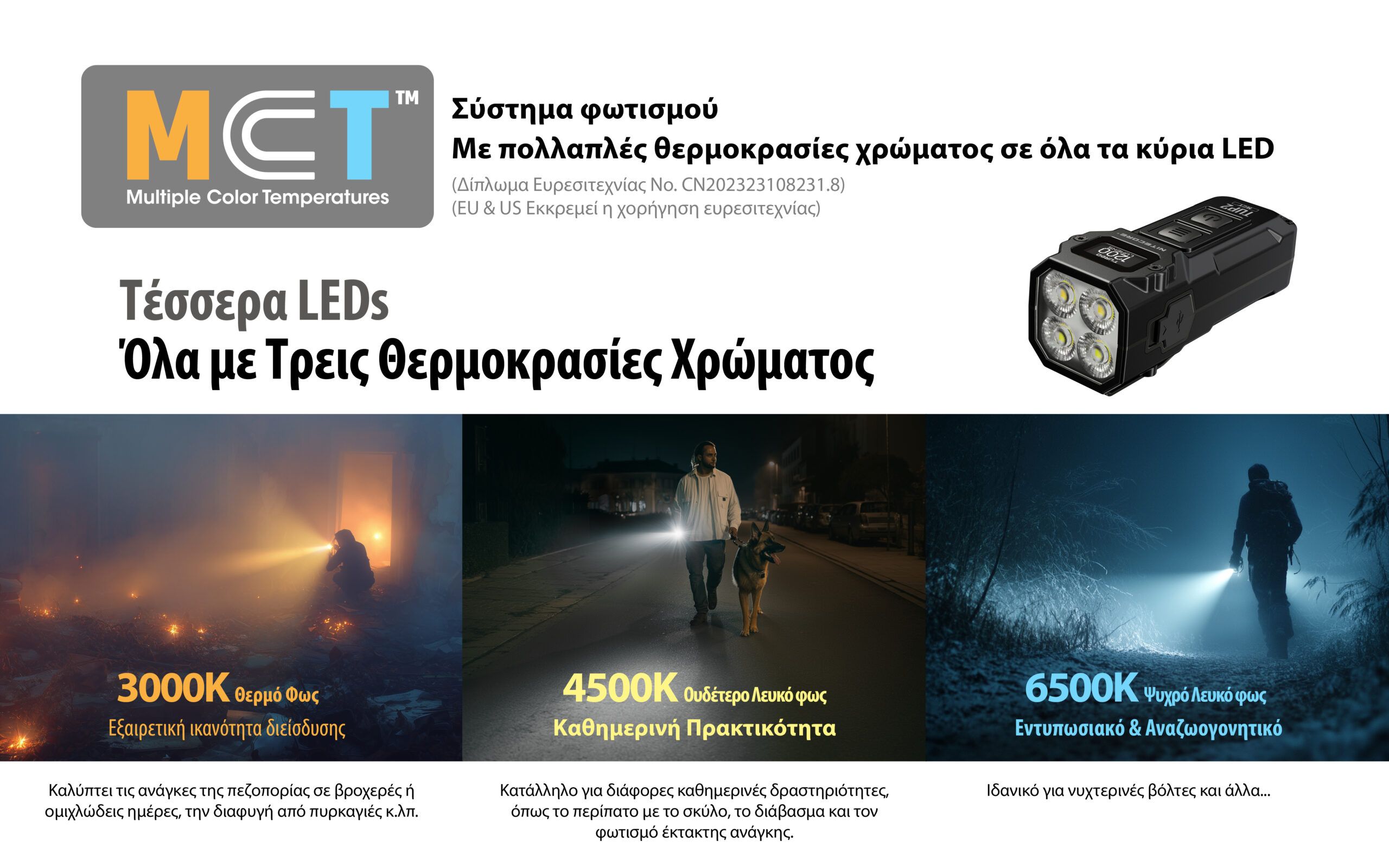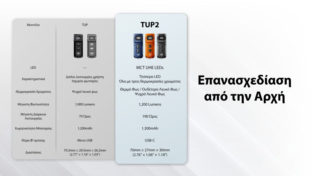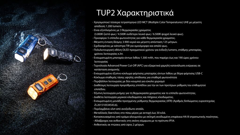 Φακός Led TUP2 Nitecore 1200lm, αδιάβροχος και ανθεκτικός, ιδανικός για καθημερινή χρήση.