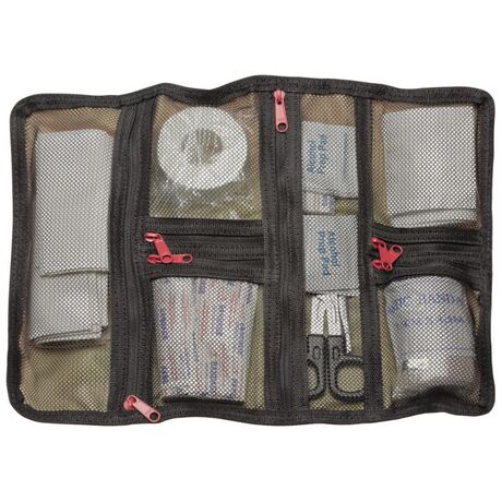 Mini first aid kit 90 τεμαχίων με όλα τα απαραίτητα είδη πρώτων βοηθειών για περιπτώσεις έκτακτης ανάγκης. Μικρή θήκη από μαλακό και εύκαμπτο υλικό για να αυξομειώνεται εύκολα ο όγκος του και να μπορείτε να το κουβαλάτε μαζί σας σε όλες τις υπαίθριες δραστηριότητες σας, αλλά και στο σπίτι ή σε εργασιακό χώρο. Διαθέτει 6 εσωτερικές τσέπες με φερμουάρ για την οργάνωση και τον διαχωρισμό των αντικειμένων με αποτέλεσμα την εύκολη χρήση και ανεύρεσή τους ανα πασα στιγμή. Εξωτερικό κλείσιμο με πόρπη για μέγιστη ασφάλεια κατά την μεταφορά.