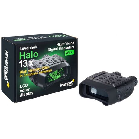 Ψηφιακά κιάλια νυχτερινής όρασης Halo 13x από την κορυφαία εταιρεία Levenhuk! Η συσκευή αυτή διαθέτει ενσωματωμένο καταγραφέα και του δίνει τη δυνατότητα χρήσης είτε ως συσκευή παρατήρησης είτε ως συσκευή λήψης φωτογραφιών και καταγραφής βίντεο. Σε συνθήκες χαμηλού φωτισμού αποδίδει ασπρόμαυρες εικόνες ενώ κατά την διάρκεια της ημέρας και σε συνθήκες έντονης φωτεινότητας χρησιμοποιείται όπως τα συνηθισμένα κιάλια αποδίδοντας έγχρωμες εικόνες. Η συσκευή αυτή είναι μια εξαιρετική επιλογή για παρατήρηση της φύσης και εξερεύνηση. Εξοπλισμένο με αντιανακλαστική επίστρωση διοξειδίου του πυριτίου στα οπτικά του οργάνου καταφέρνει να αποδίδει ευκρινείς εικόνες υψηλής αντίθεσης ενώ κατά την διάρκεια της ημέρας και σε συνθήκες υψηλού φωτισμού αποδίδουν φωτεινές και λεπτομερείς εικόνες. Διαθέτει υπέρυθρο φωτισμό ρυθμιζόμενο κατά 7 επίπεδα ώστε να επιλέγετε το κατάλληλο με βάση τις συνθήκες και την ένταση του φωτισμού. Αν ο στόχος σας είναι η υψηλή ευκρίνεια στην παρατηρούμενη εικόνα τότε μπορείτε να επιλέξετε ένα υψηλό επίπεδο φωτεινότητας ενώ αν σας ενδιαφέρει η εξοικονόμηση ενέργειας και όχι τόσο η ανάλυση τότε μπορείτε να επιλέξετε ένα χαμηλό επίπεδο φωτεινότητας.