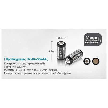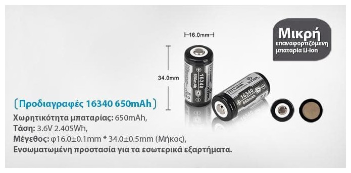 XTAR ΜΠΑΤΑΡΙΑ 16340 650mah