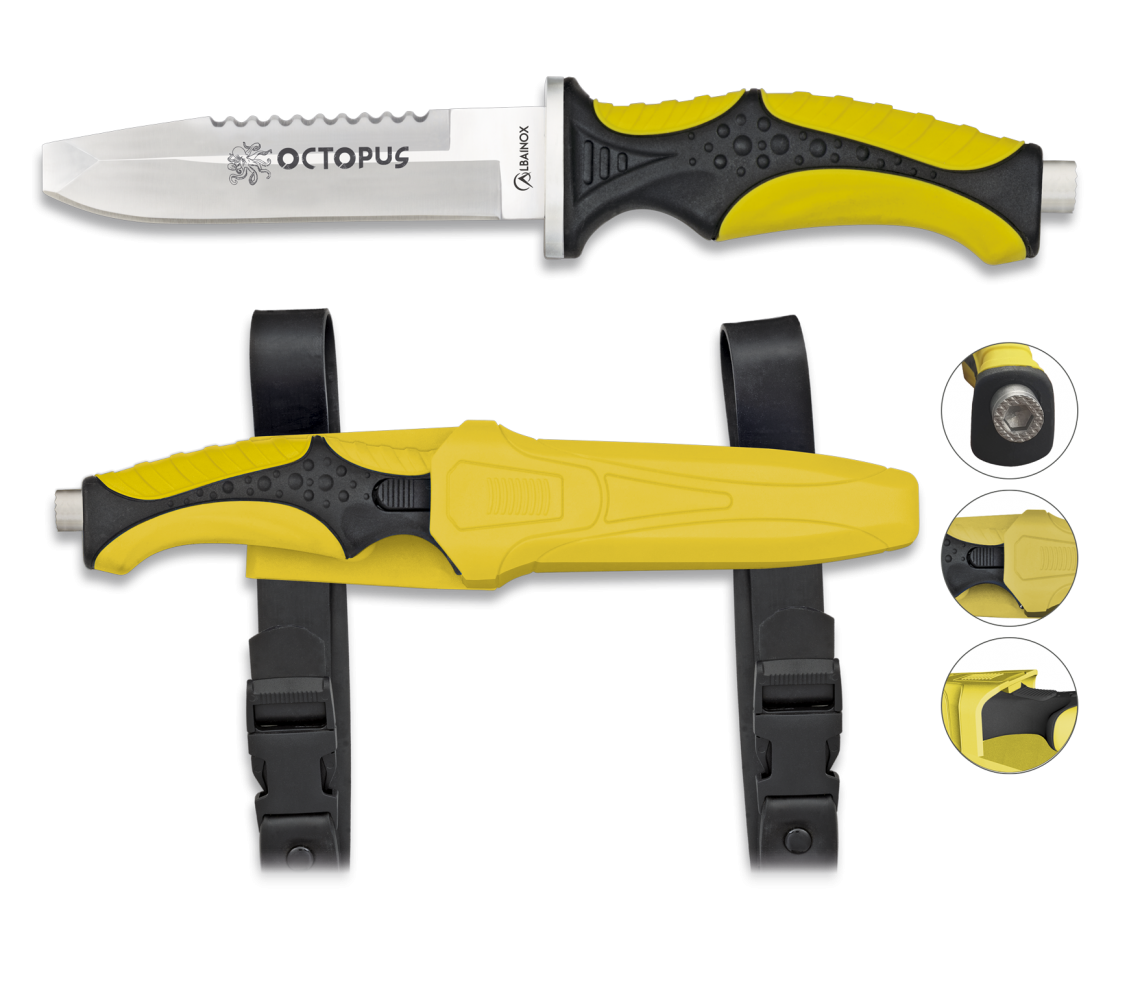 Μαχαίρι από την Albainox με κωδικό 32333,έχει μήκος λάμας 11,5 εκατοστά με λαβή από λάστιχο.Το υλικό κατασκευής της λάμας είναι ανοξείδωτο ατσάλι για μεγαλύτερη αντοχή και ποιότητα.Έχει μικρό μέγεθος για να μπορείτε να το κουβαλάτε παντού μαζί σας και είναι ελαφρύ σε βάρος.Ιδανικό αξεσουάρ για να σας συντροφεύει στις υπαίθριες δραστηριότητες σας και όχι μόνο αφού μπορείτε να το έχετε παντού μαζί σας! =Είναι κατάλληλο για καταδύσεις!