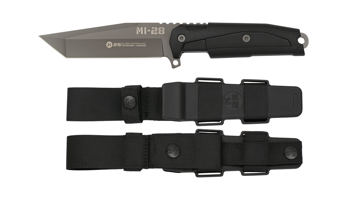 Μαχαίρι από την Κ25 με κωδικό 32391,έχει μήκος λάμας 11,5 εκατοστά με λαβή από λάστιχο.Το υλικό κατασκευής της λάμας είναι ανοξείδωτο ατσάλι με επίστρωση τιτανίου για μεγαλύτερη αντοχή και ποιότητα.Έχει μικρό μέγεθος για να μπορείτε να το κουβαλάτε παντού μαζί σας και είναι ελαφρύ σε βάρος.Ιδανικό αξεσουάρ για να σας συντροφεύει στις υπαίθριες δραστηριότητες σας και όχι μόνο αφού μπορείτε να το έχετε παντού μαζί σας!