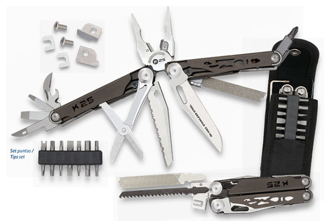 Ανακαλύψτε το Πολυεργαλέιο K25, ένα εξαιρετικό εργαλείο που συνδυάζει ποιότητα και λειτουργικότητα. Με μήκος 178mm και βάρος 324gr, είναι ιδανικό για κάθε εργασία. Η λεπίδα του, μήκους 85mm και πάχους 2,2mm, κατασκευάζεται από ατσάλι 7Cr17Mov, εξασφαλίζοντας αντοχή και μακροχρόνια χρήση. Το εργαλείο διαθέτει 14 εναλλασσόμενες μύτες, προσφέροντας ευελιξία και δυνατότητα προσαρμογής σε πολλές εφαρμογές. Η λαβή του είναι 114mm, παρέχοντας άνετο και ασφαλές κράτημα. Η θήκη από νάιλον διευκολύνει τη μεταφορά και την αποθήκευση του εργαλείου. Το Πολυεργαλέιο K25 είναι το ιδανικό εργαλείο για επαγγελματίες και ερασιτέχνες που αναζητούν ποιότητα και απόδοση.