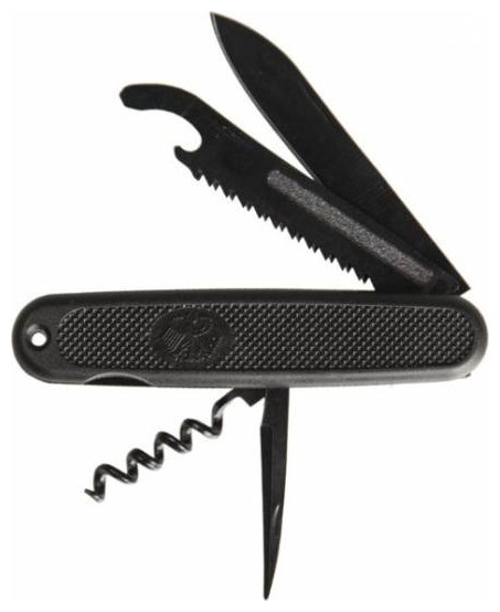 Πολυεργαλείο με την υπογραφή της κορυφαίας εταιρείας Mil-Tec του Γερμανικού Στρατού, ιδανικό για όλες τις εξορμήσεις! Η λάμα του είναι κατασκευασμένη από ανοξείδωτο ατσάλι, το οποίο δεν σκουριάζει και είναι εύκολο να καθαριστεί. Η χειρολαβή είναι κατασκευασμένη από ABS πλαστικό για μεγαλύτερη αντοχή. Με την λάμα διπλωμένη έχει μήκος 11cm, ενώ το μήκος της λεπίδας είναι 8cm. Ο σουγιάς είναι εξοπλισμένος με τα βασικά εργαλεία που θα σας χρειαστούν όπου και αν βρίσκεστε: Τιρμπουσόν, πριόνι για ξύλο, ανοικτήρι για μπουκάλια και κατσαβίδι. Περιλαμβάνει θήκη από πολυουρεθάνη.