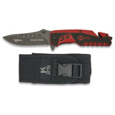 Σουγιάς Κ25 Red με σύστημα γρήγορου ανοίγματος με υποβοήθηση ελατηρίου για περιπτώσεις έκτακτης ανάγκης. Κατασκευασμένο από υλικά υψηλής ποιότητα για μέγιστη αντοχή στον χρόνο και άνετο κράτημα με το ένα χέρι. Διαθέτει επίσης καρφί θραύσης κρυστάλλων και κόφτη ζώνης. Στην Συσκευασία περιλαμβάνεται νάιλον θήκη.